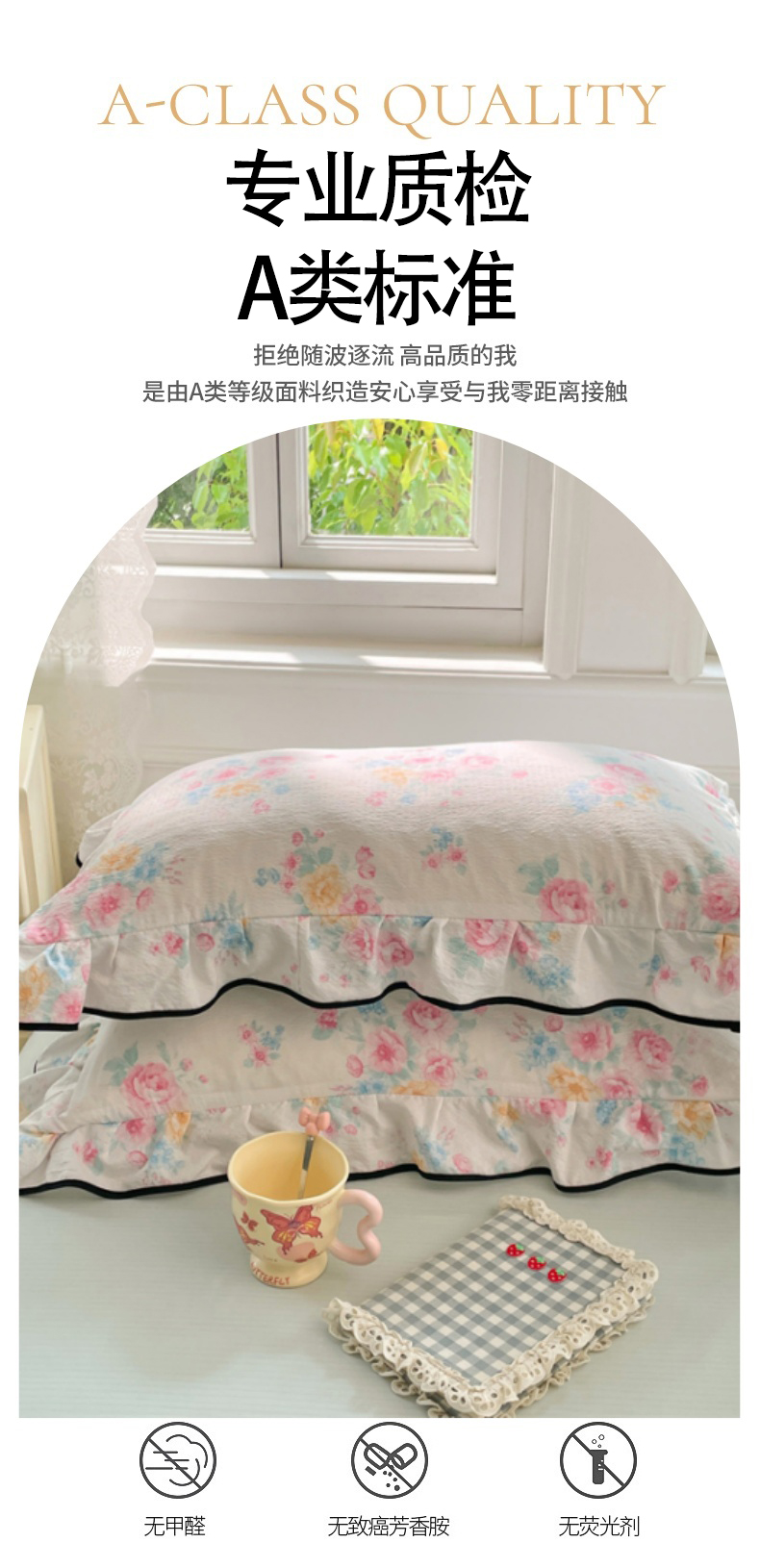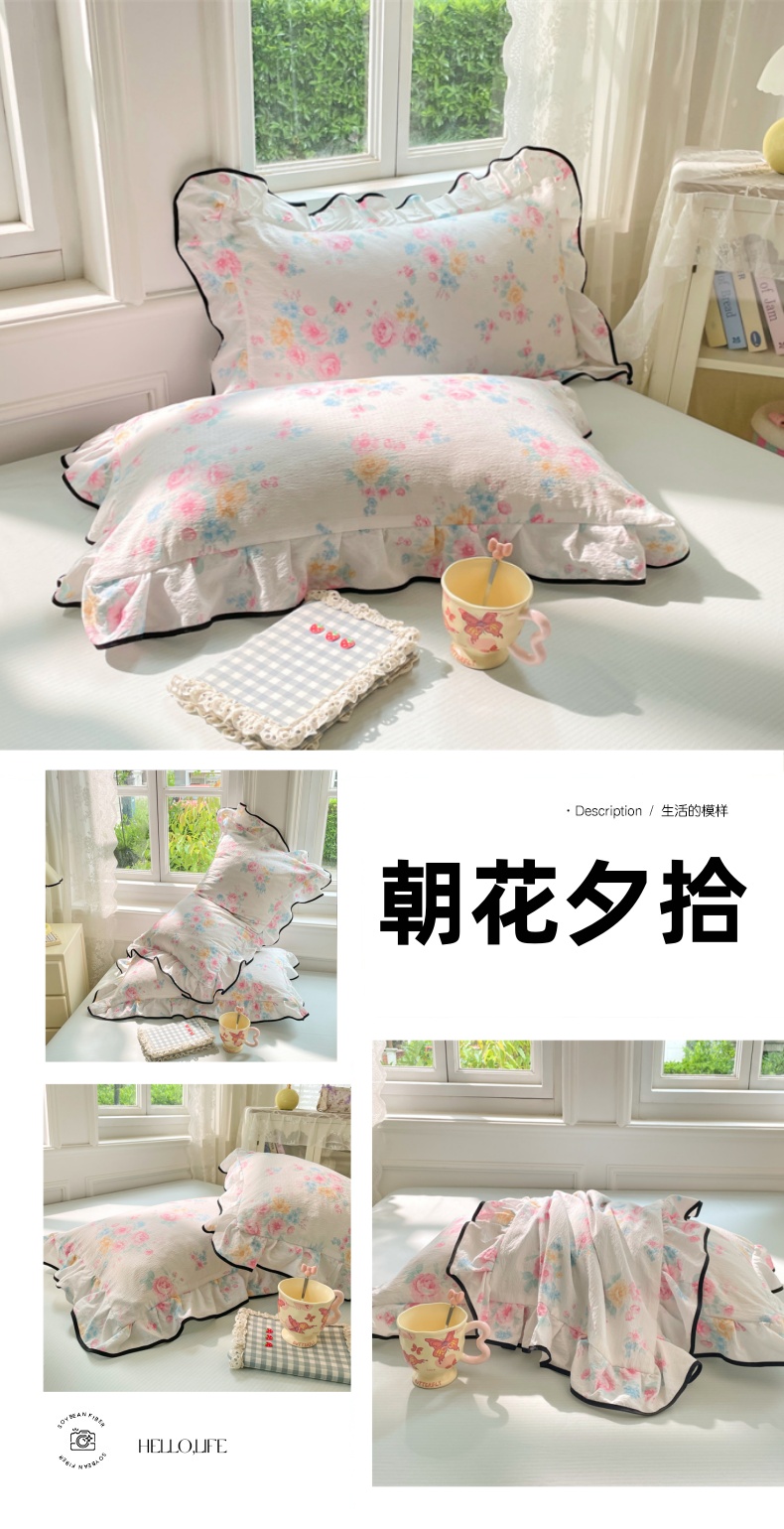 商品名称:圣比熊 2025新款云感双层纱花边枕套宿舍学生48x74一对枕芯内胆套 朝花夕拾