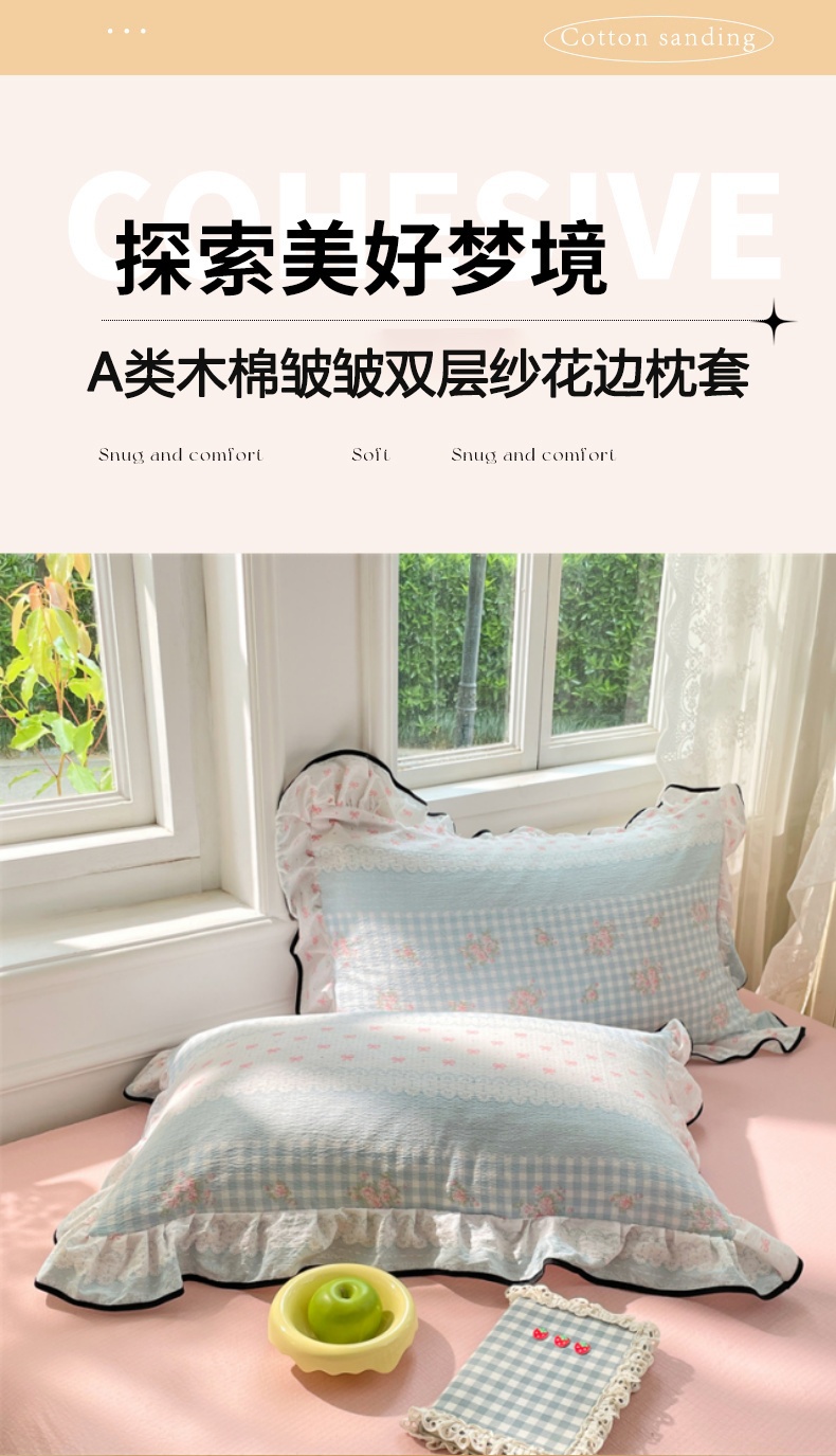 (总)梦舒羽 2025新款云感双层纱花边枕套宿舍学生48x74一对枕芯内胆套,花田小兔,遇见浪漫,朝花夕拾,春日初见,繁花入梦,浮生若梦,梦境灰,倾城之恋,甜心小狗,夏日蓝,小皇冠,紫薇花园