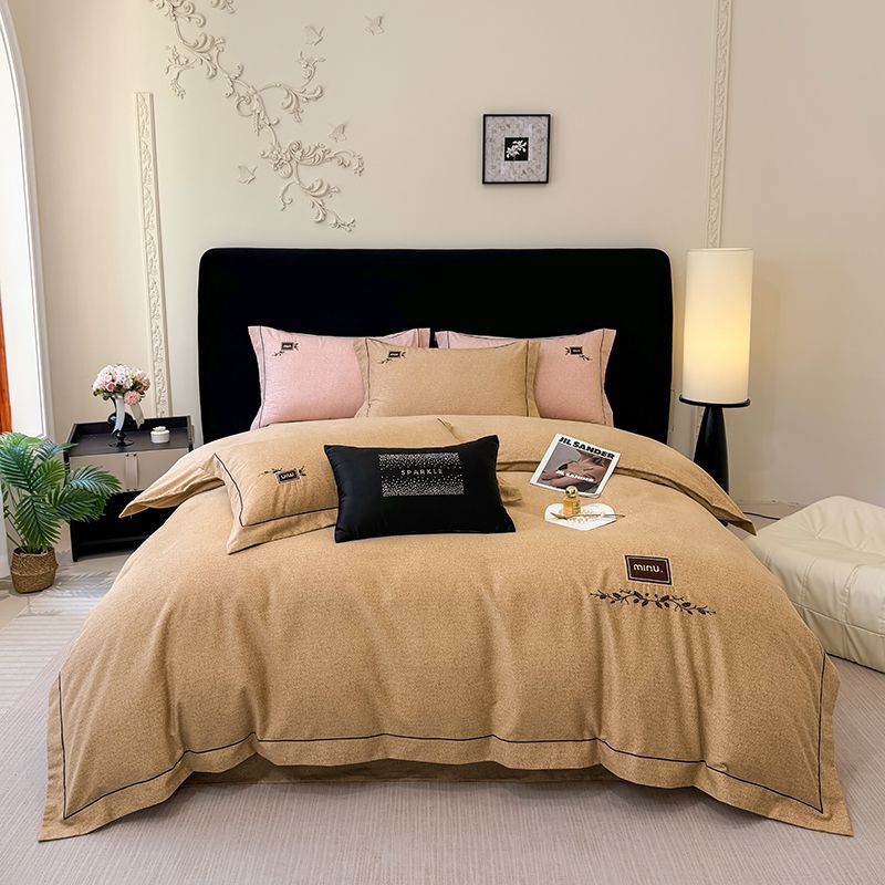 孑寐家纺 2025新款全棉磨毛刺绣绣花四件套-简爱 简爱-浅咖