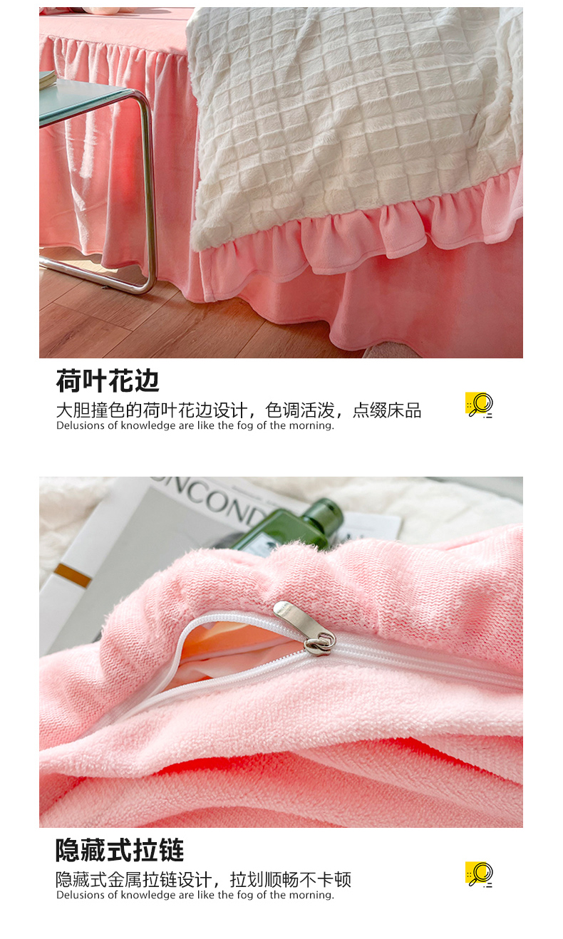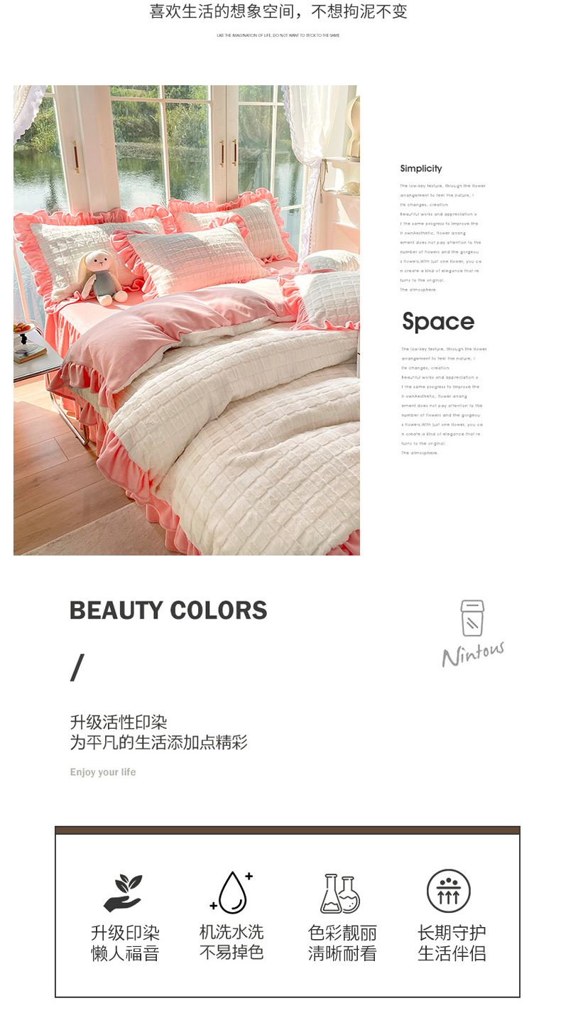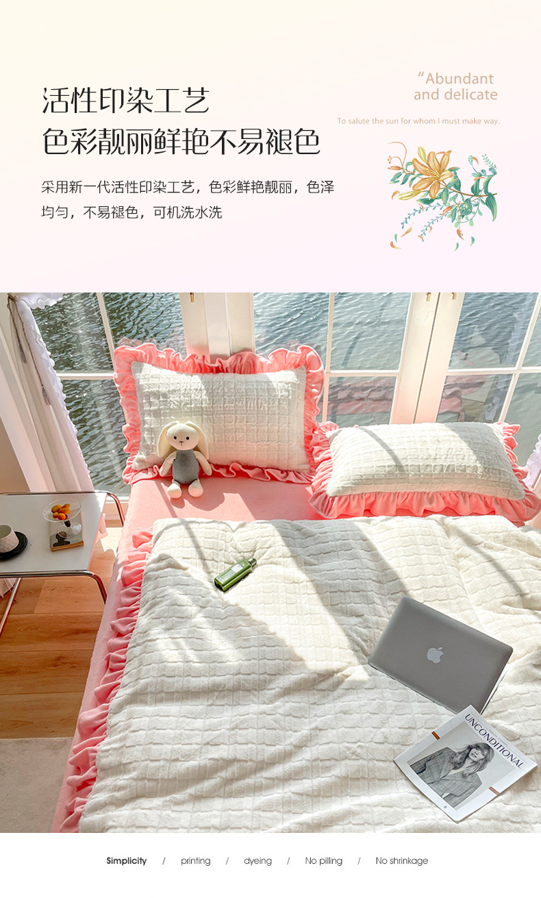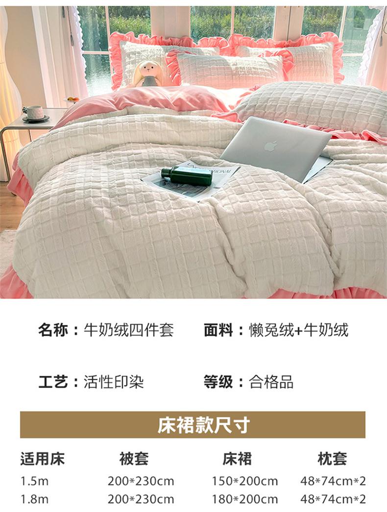 商品名称:睡美人 2025新款韩版方块兔绒牛奶绒床裙公主款四件套 方块兔绒-少女粉