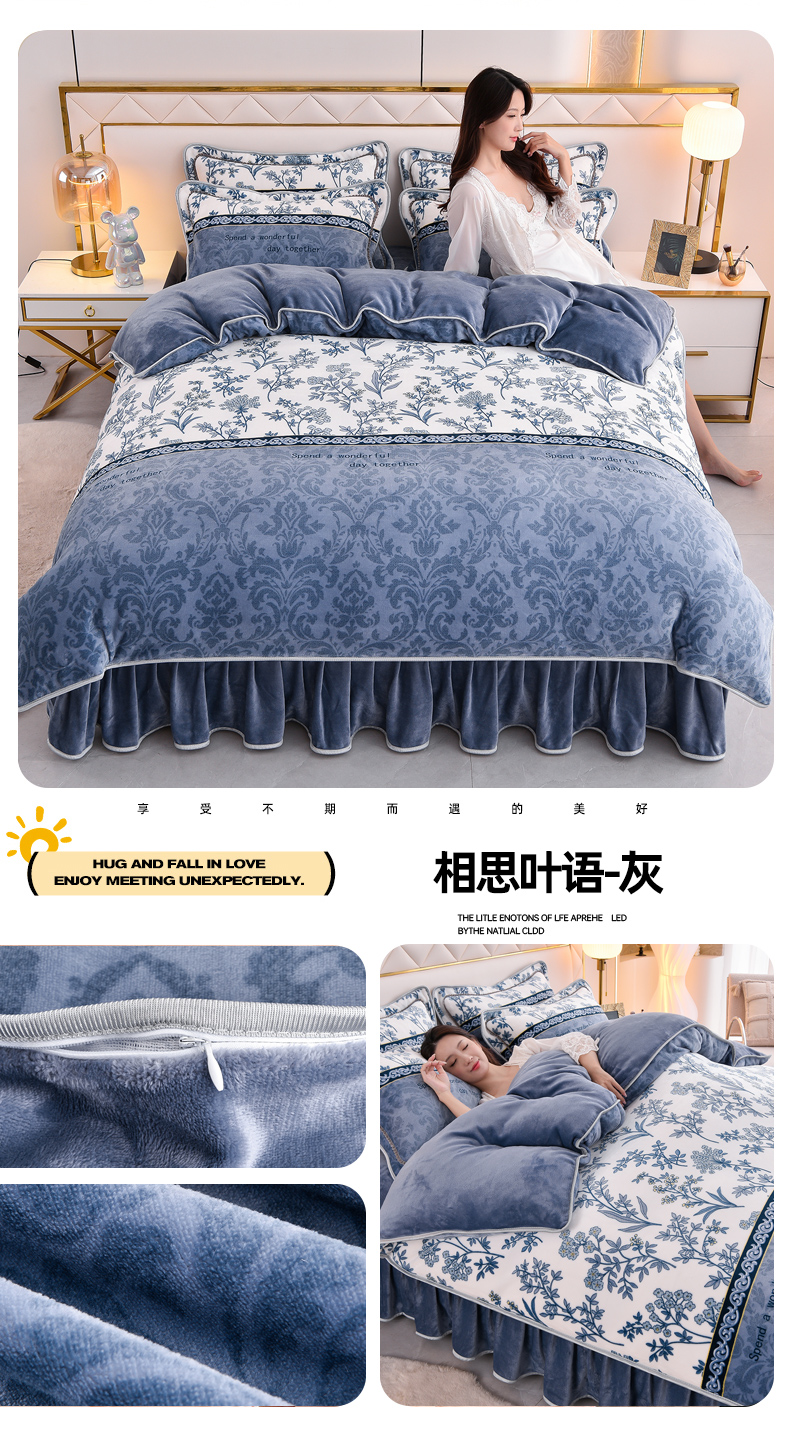 (总)启扬 2025直播爆款新款8.5斤加厚高克重牛奶绒四件套床裙款法莱绒宝宝绒金貂绒,相思叶语-蓝,相思叶语-灰,安格斯,幸运相伴,浅夏时光,希亚-灰,调皮熊,幽兰馨语,花漫里,暗香花语,茉莉粉,嫣然,春意盎然,蝶舞花语,国色天香,花团锦簇,花香醉梦,花颜,花枝招展,简约格调,经典生活,美好时光,倾城之恋,条纹空间,心想事橙,休闲人生,英伦时尚,遇见,缘定今生,艾理斯