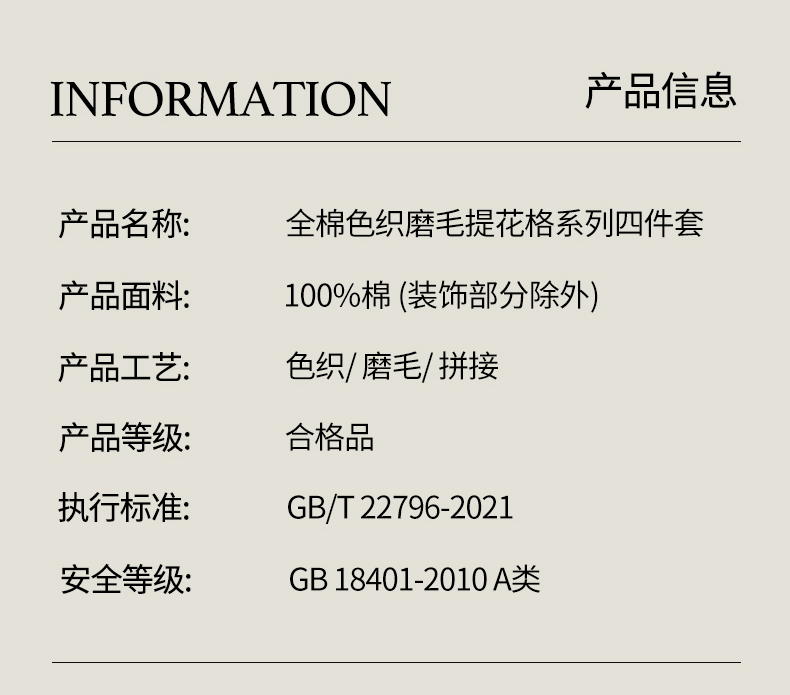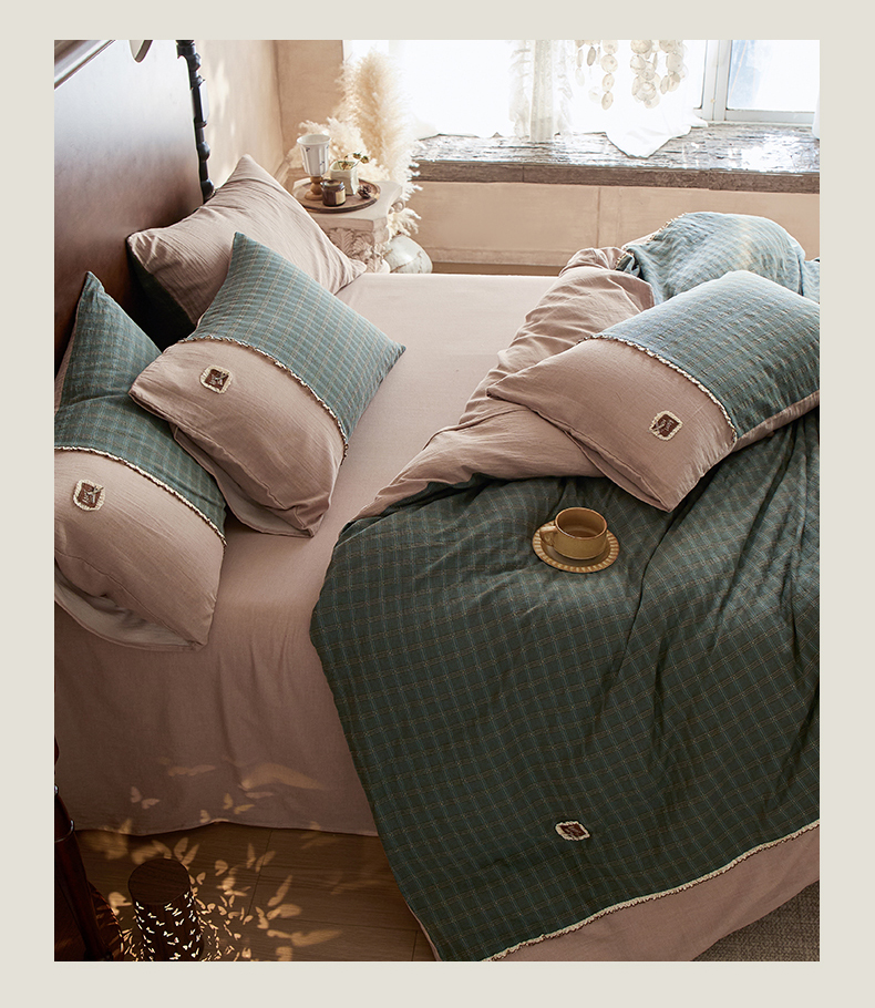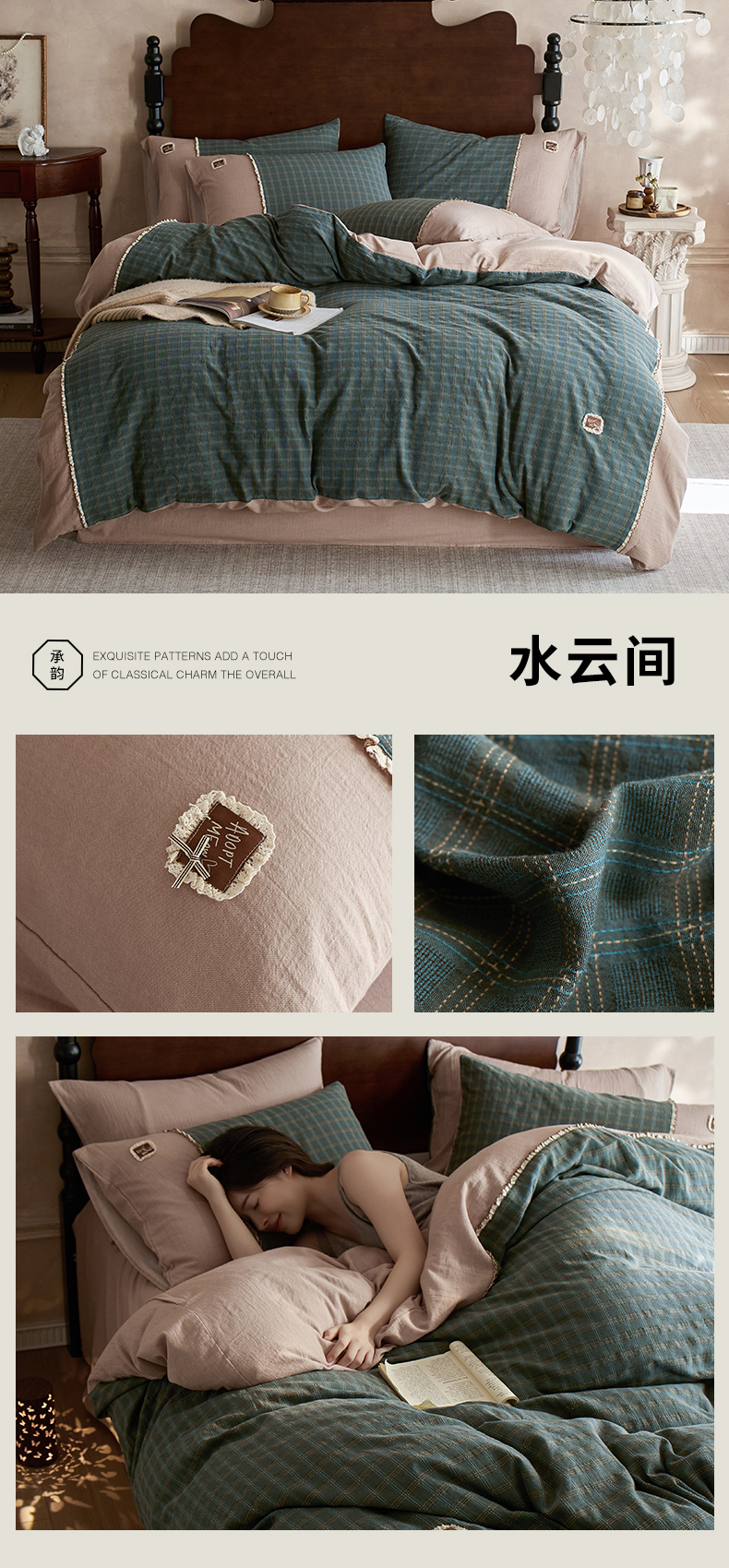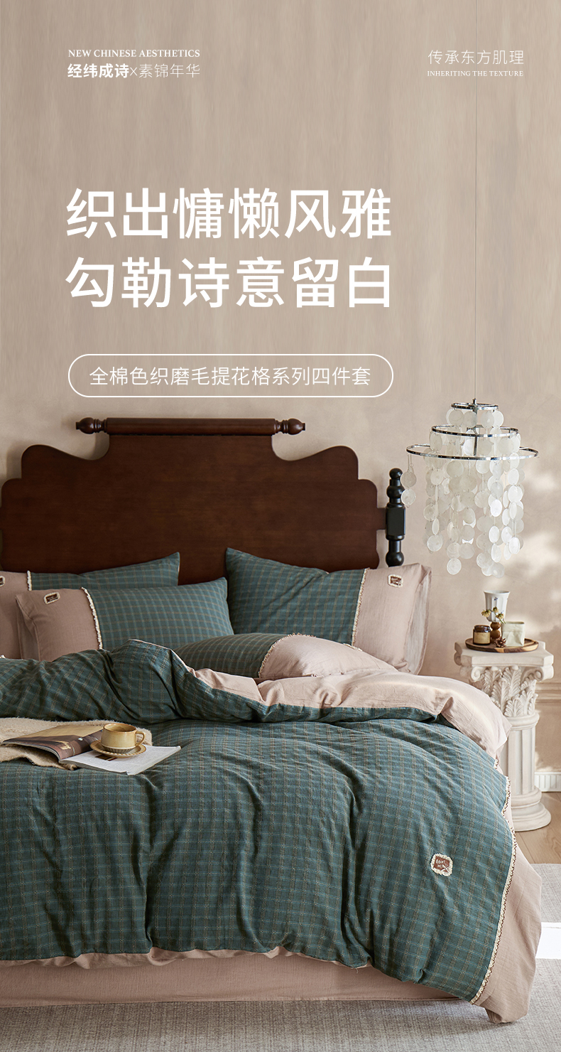 当前位置: 91家纺网 > 商品网购 > 床品套件 > 四件套 > 其它四件套 > 安莱生活 2025新款全棉纯棉色织磨毛提花格四件套 水云间