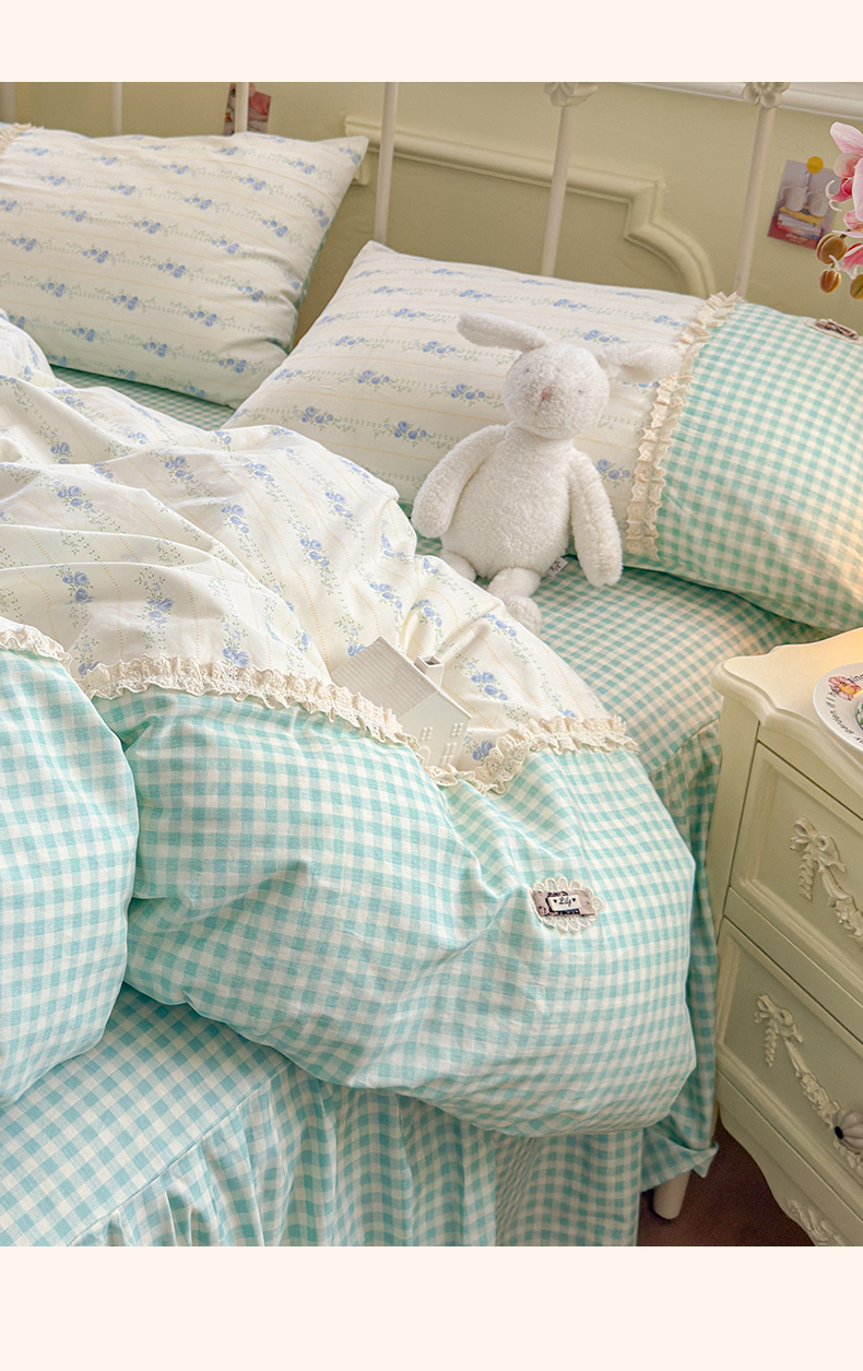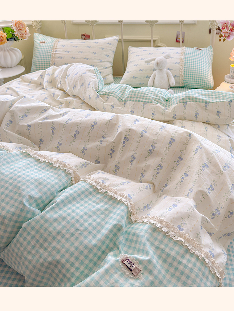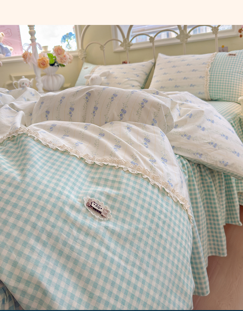 (总)安莱生活 2025新款全棉纯棉小碎花刺绣花边款四件套