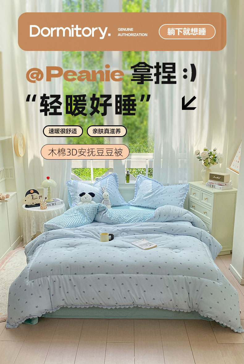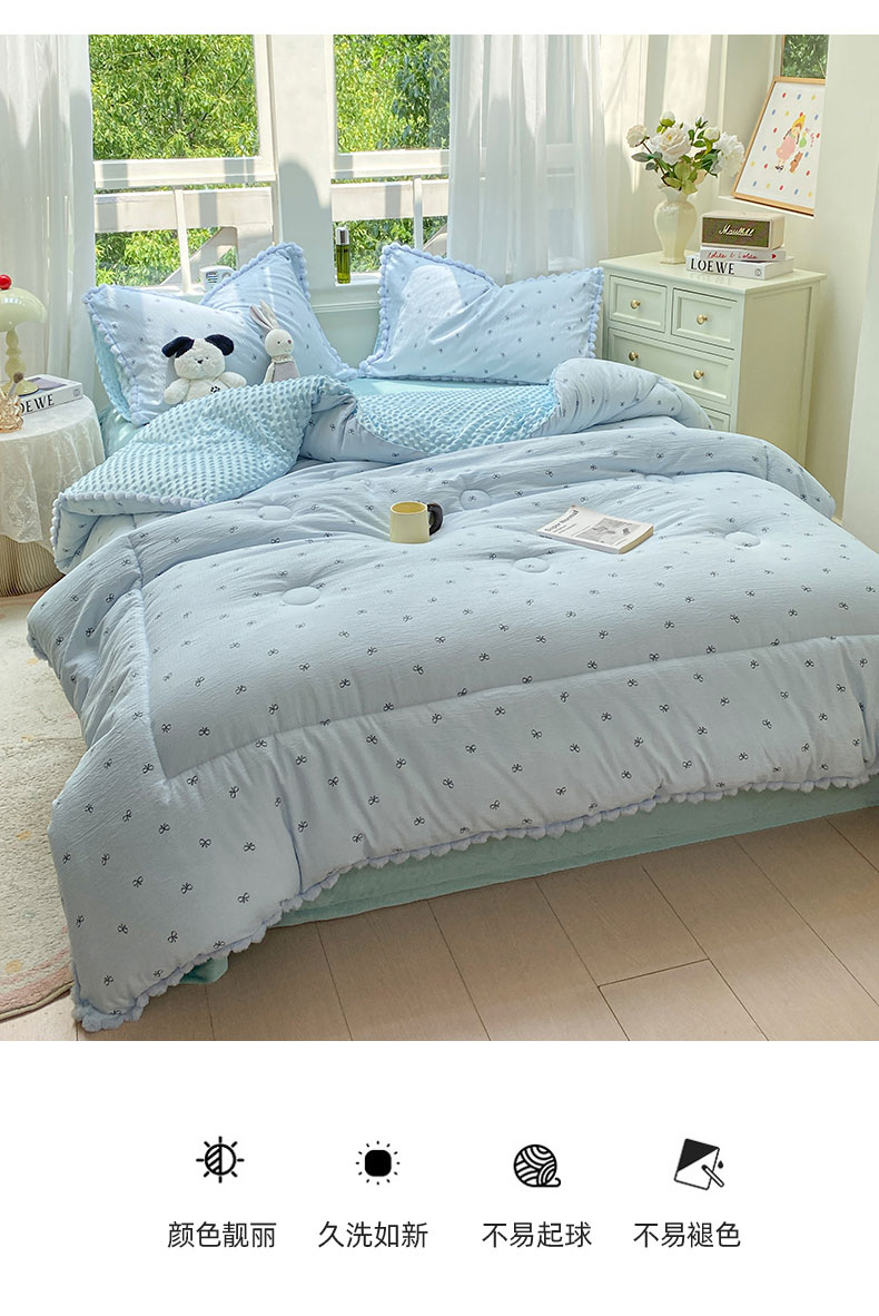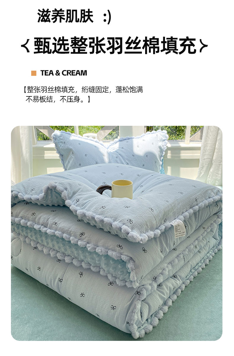 • 91家纺网 家纺一手货源 找家纺 米乐被业 2025新款毛球豆豆被小清新被子被芯 韩系蝴蝶结