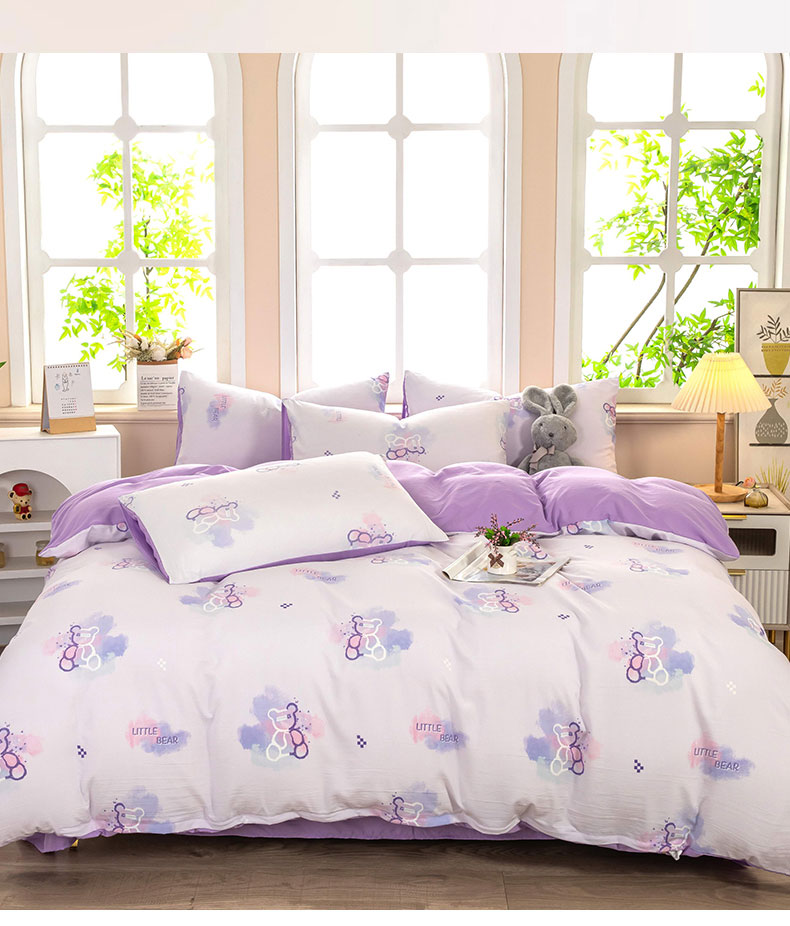 当前位置: 91家纺网 > 商品网购 > 床品套件 > 四件套 > 水洗棉四件套 > 梦莱家纺 2025新款水洗棉印花四件套 幻彩小熊-紫