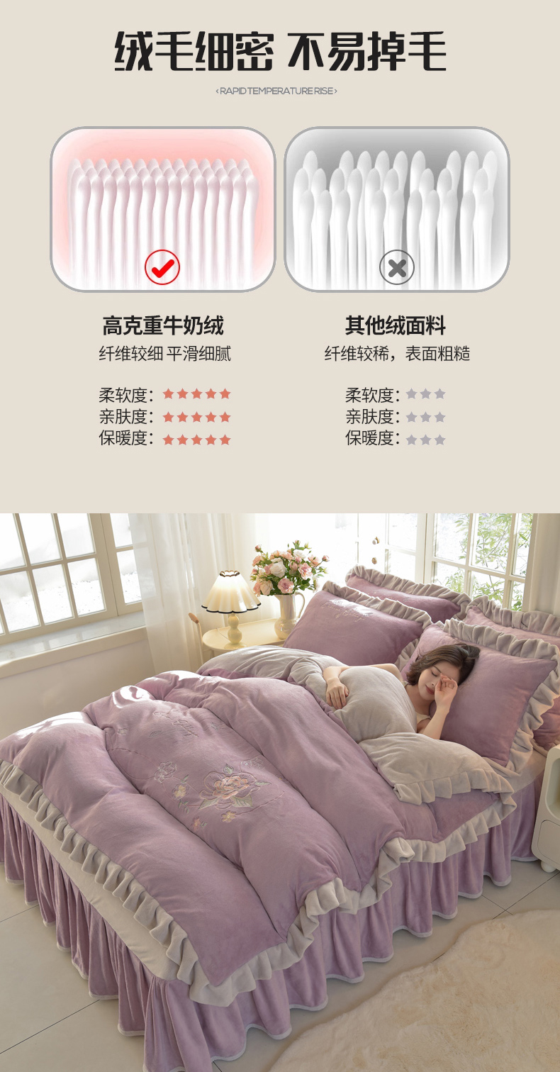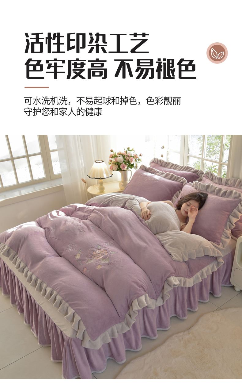 鑫喜莱家纺 2025新款刺绣双层花边牛奶绒四件套(注意控价 标准尺寸156元,实际售价不得低于控价的价格) 花韵-丁香紫