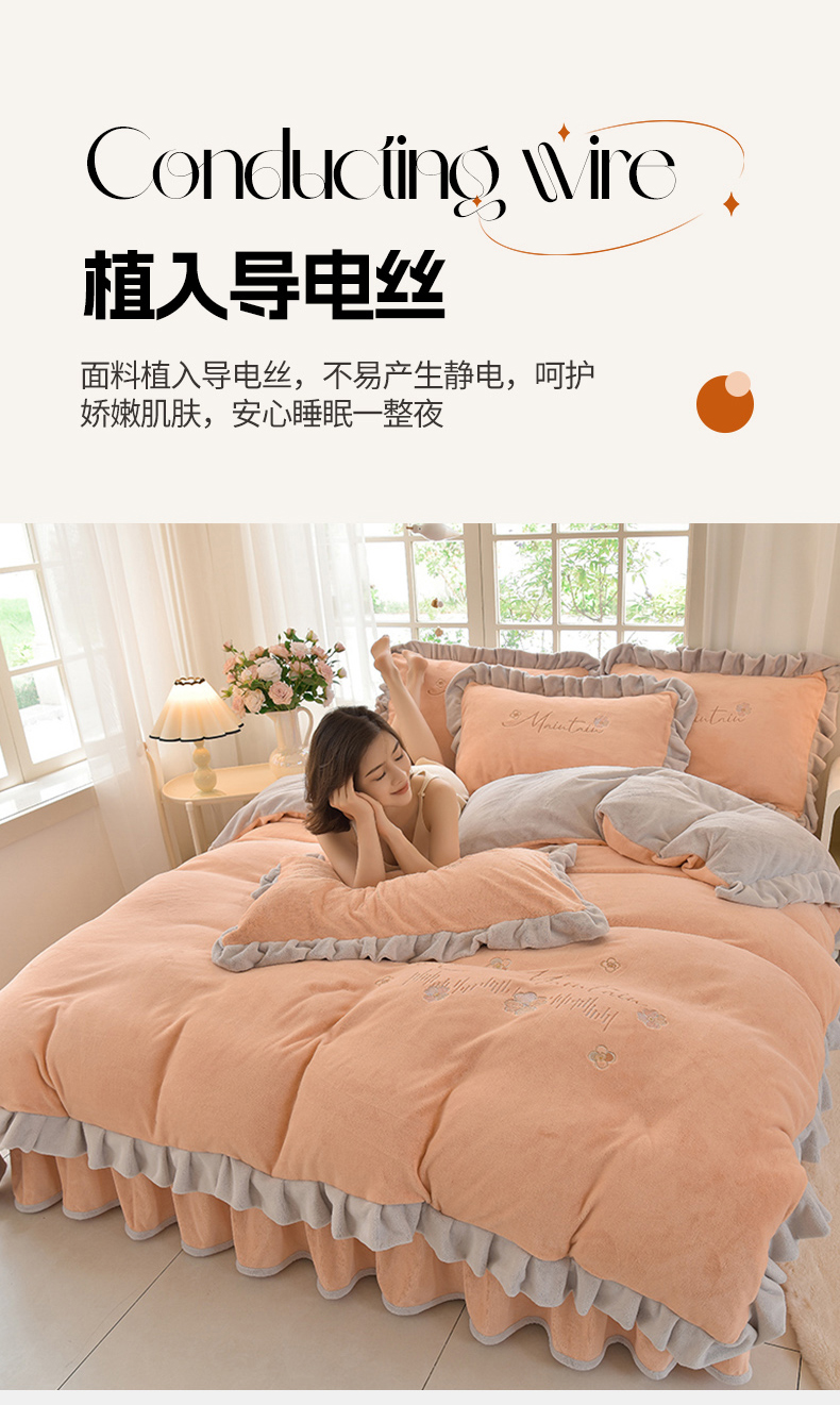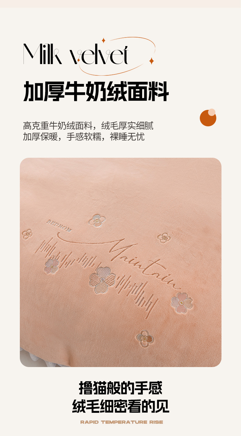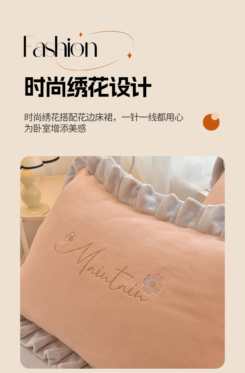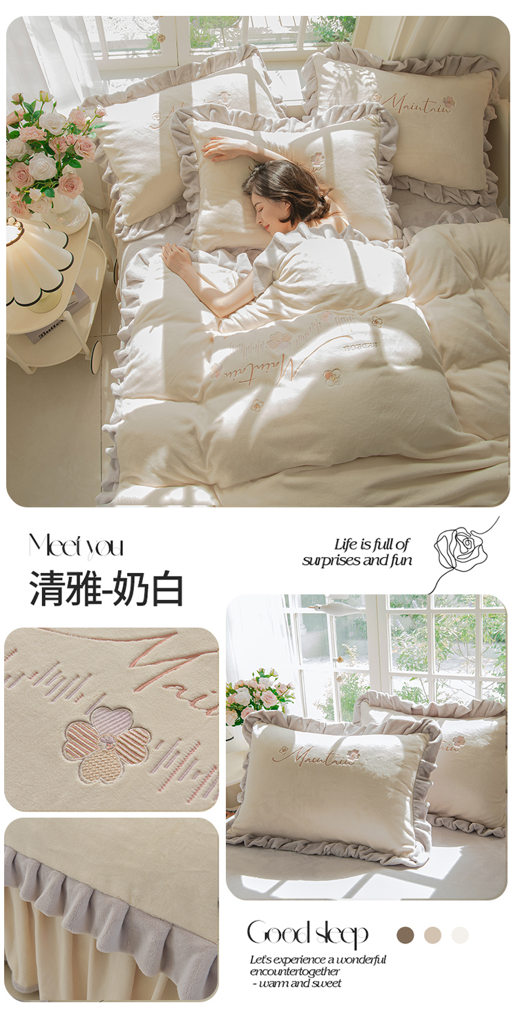 鑫喜莱家纺 2025新款刺绣双层花边牛奶绒四件套(注意控价 标准尺寸156元,实际售价不得低于控价的价格) 清雅-暖玉