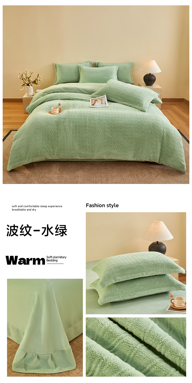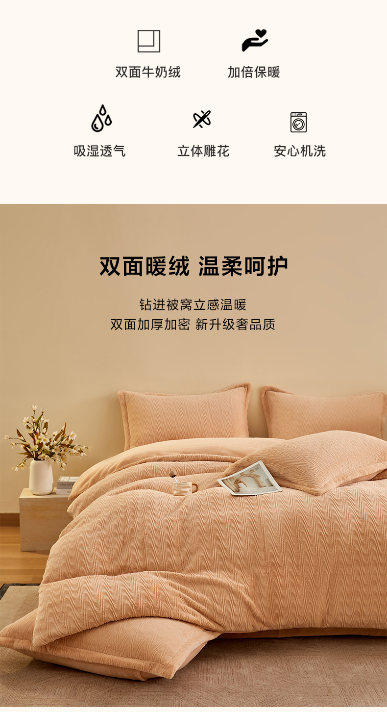 卡初家居(原微来) 2025新款A类亲肤舒适秋冬波纹系列全消光雕花牛奶绒四件套(提供买家秀) 波纹-海蓝