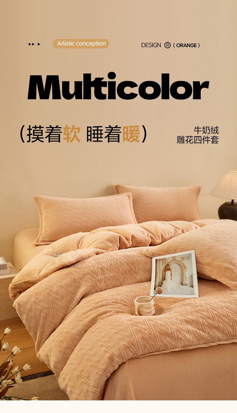 (总)卡初 2022新款高克重牛奶绒浪花绒四件套,爱丽丝-粉色,爱丽丝-灰色,爱丽丝-桔色,爱丽丝-蓝色,爱丽丝-米色