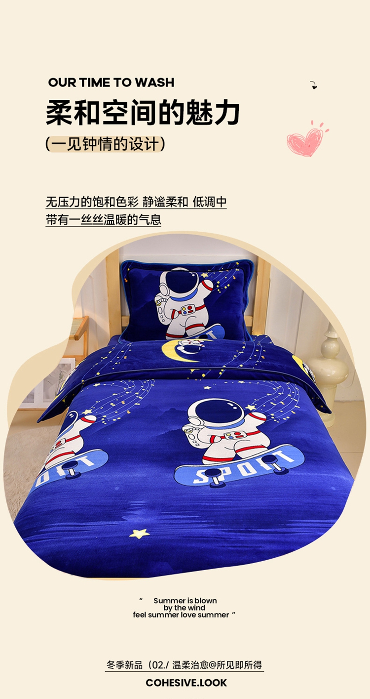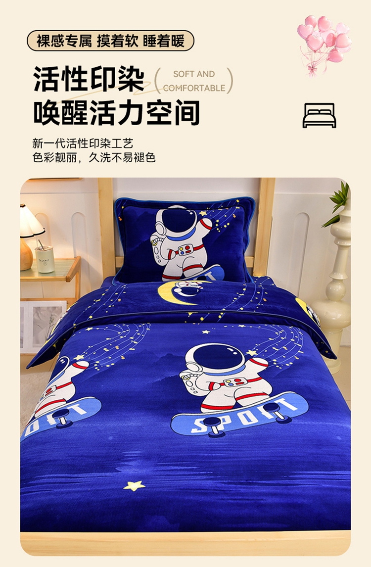 馨梦缘2025新款爆款高克重印花牛奶绒法莱绒学生三件套 宇航员