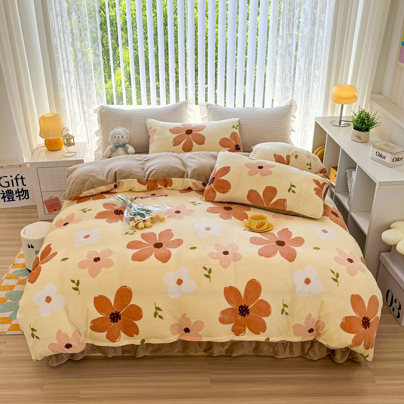 鸿羽樱(鸿羽樱)家纺 2025新款直播热款小清新牛奶绒四件套 花意然