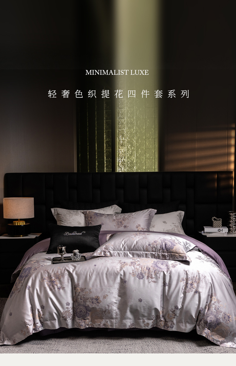 立奥被业 2025新款天丝棉色织大提花四件套 诗意花颜-紫