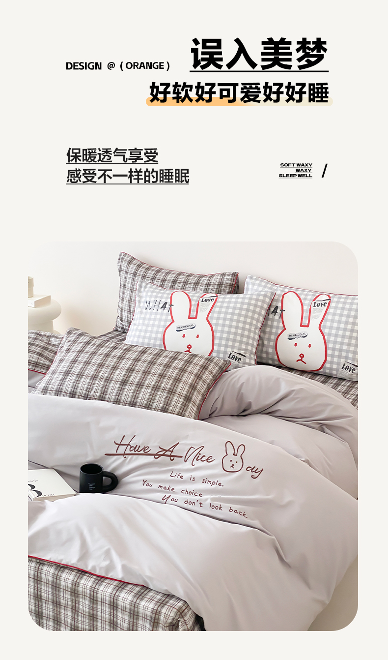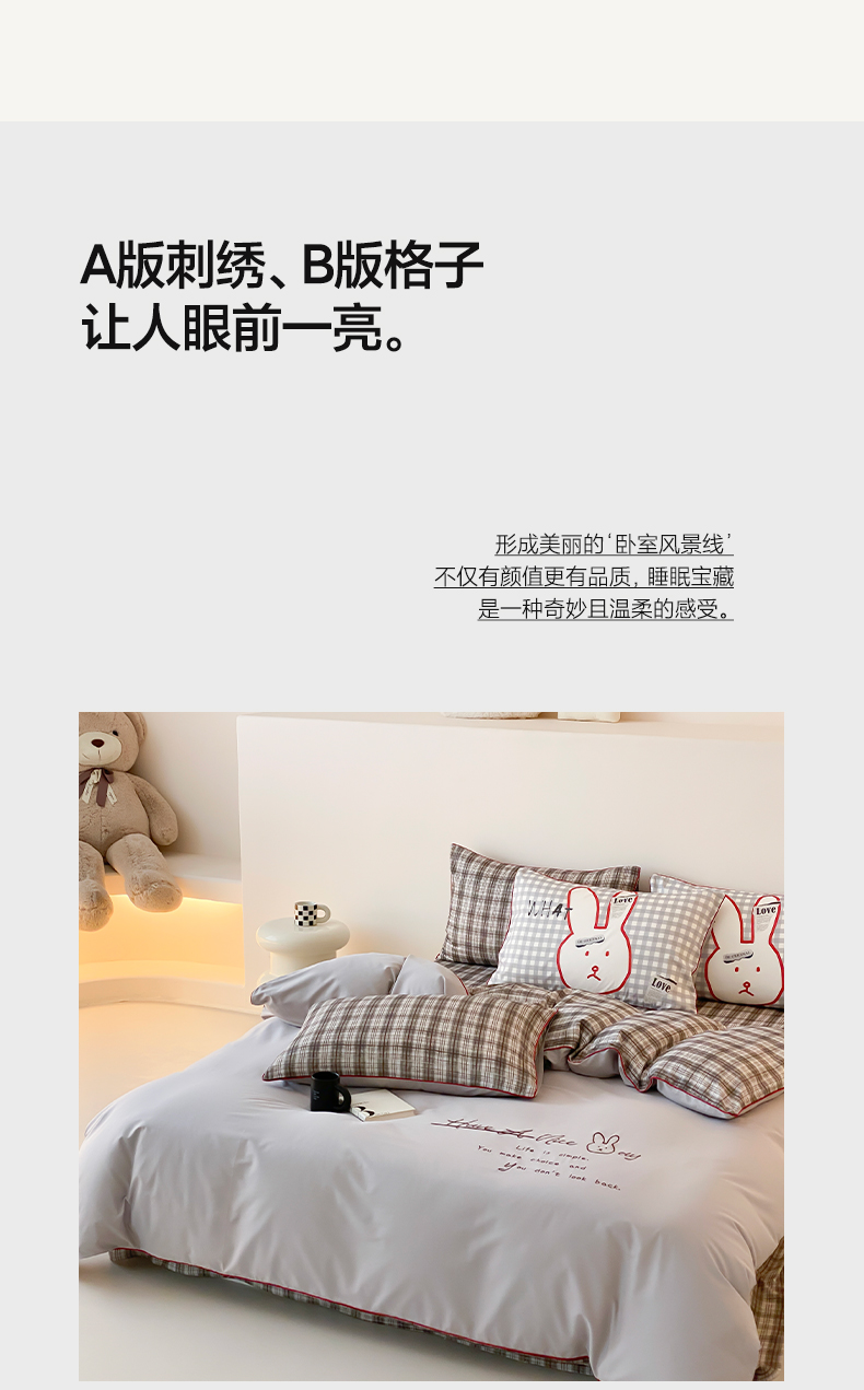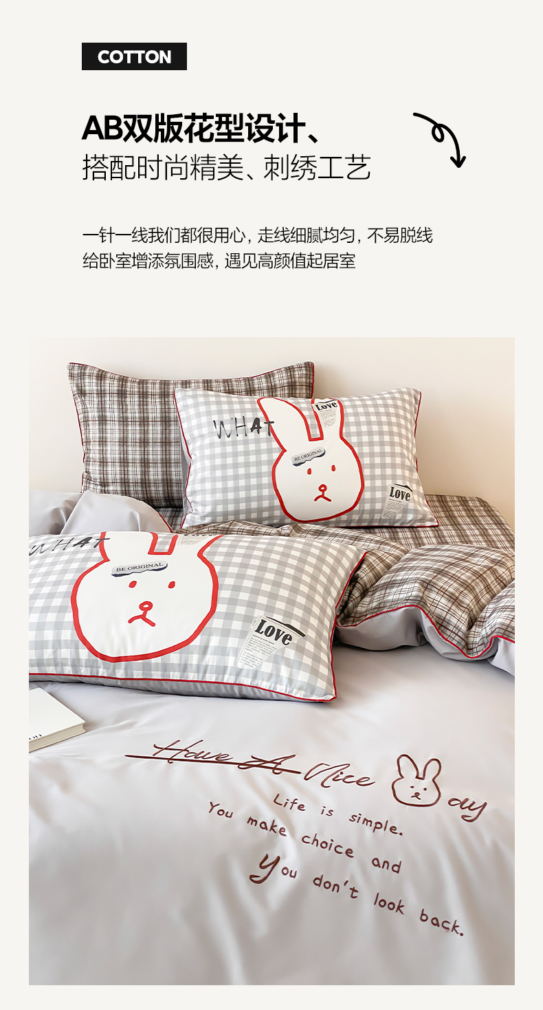 当前位置: 91家纺网 > 商品网购 > 床品套件 > 四件套 > 水洗棉四件套 > 如一 2025新款A类全棉纯棉色织水洗棉刺绣数码四件套 钱兔