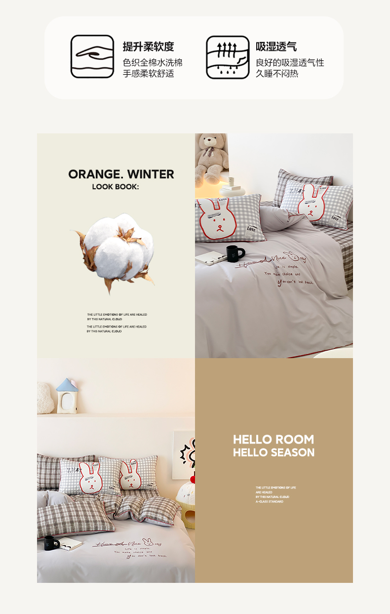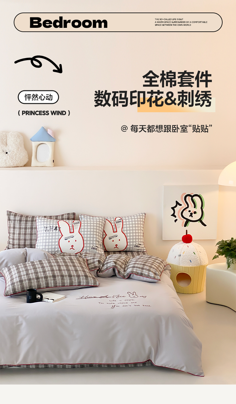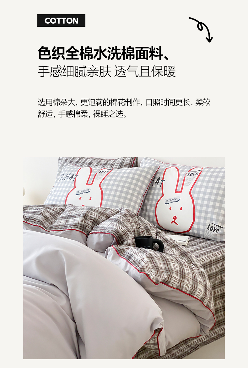 当前位置: 91家纺网 > 商品网购 > 床品套件 > 四件套 > 水洗棉四件套 > 如一 2025新款A类全棉纯棉色织水洗棉刺绣数码四件套 钱兔