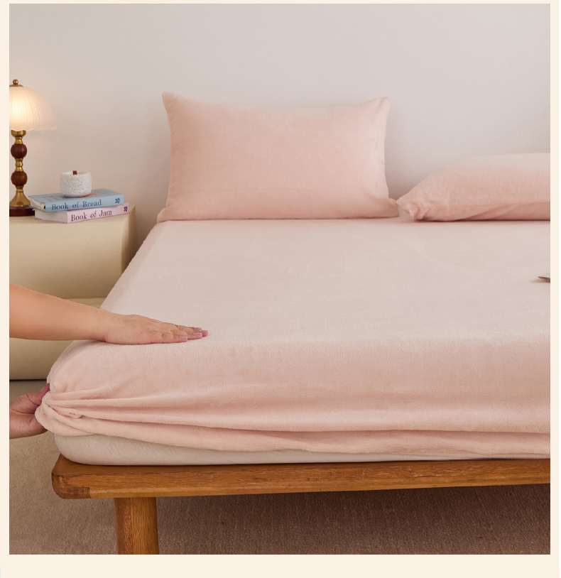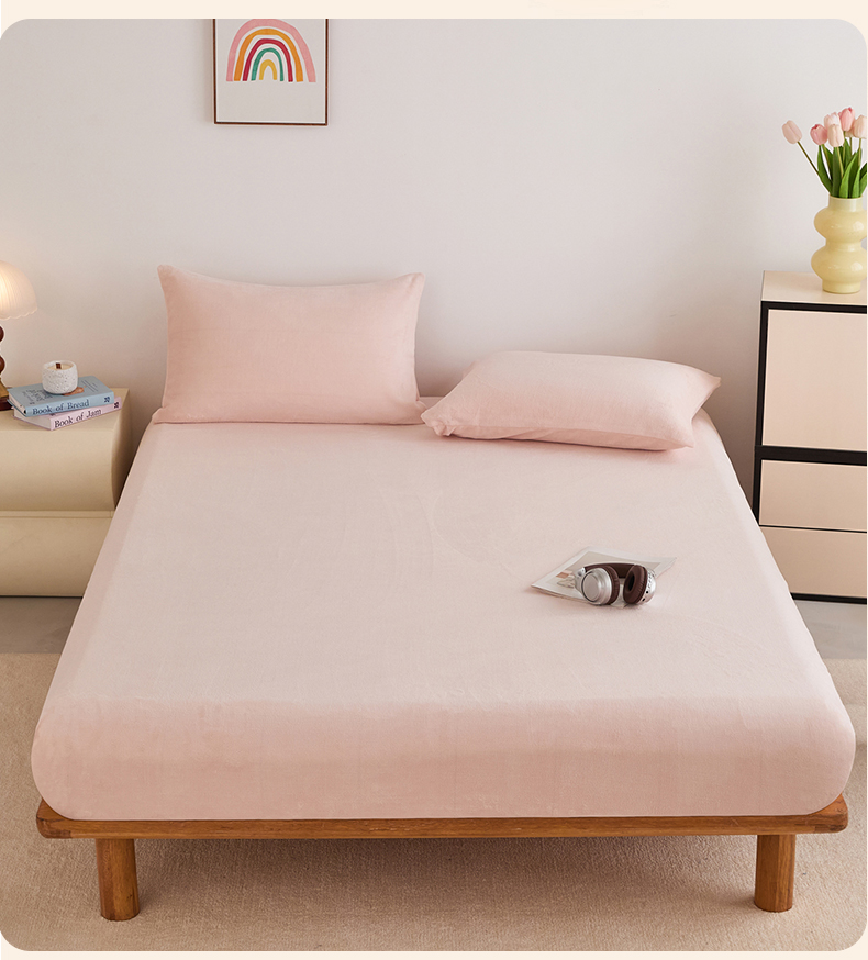 曼町家居 2025新款高克重柔软牛奶绒床笠单床笠床笠单件 蜜桃粉