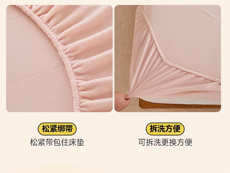 • 91家纺网 家纺一手货源 找家纺 曼町家居 2025新款高克重柔软牛奶绒床笠单床笠床笠单件 蜜桃粉