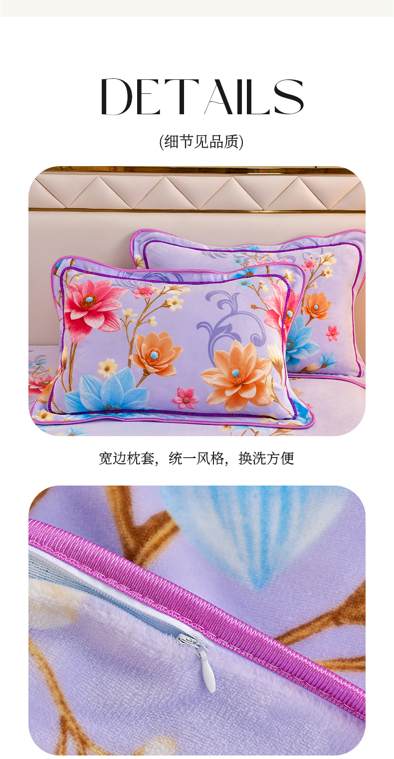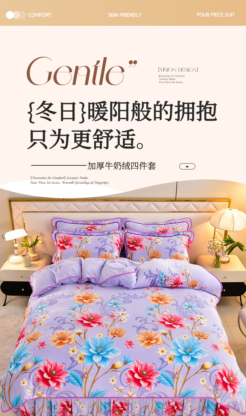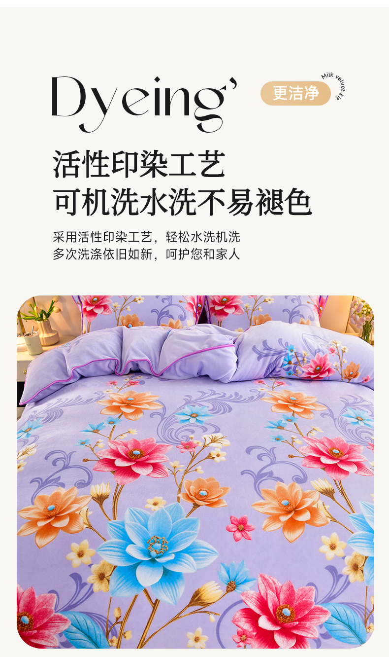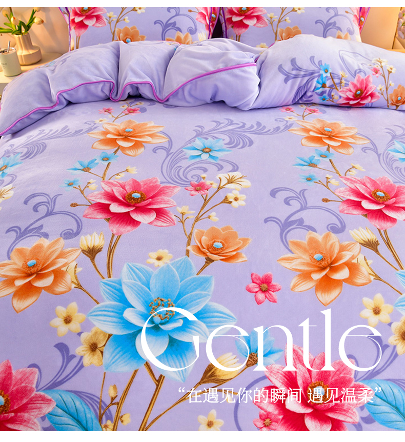 (总)馨梦缘 2025新款牛奶绒数码印花四件套,百花齐放-粉,百花齐放-桔,玫瑰时光-粉,玫瑰时光-紫,秘境-紫