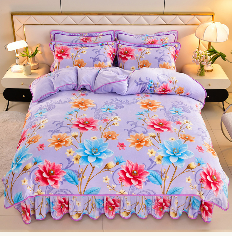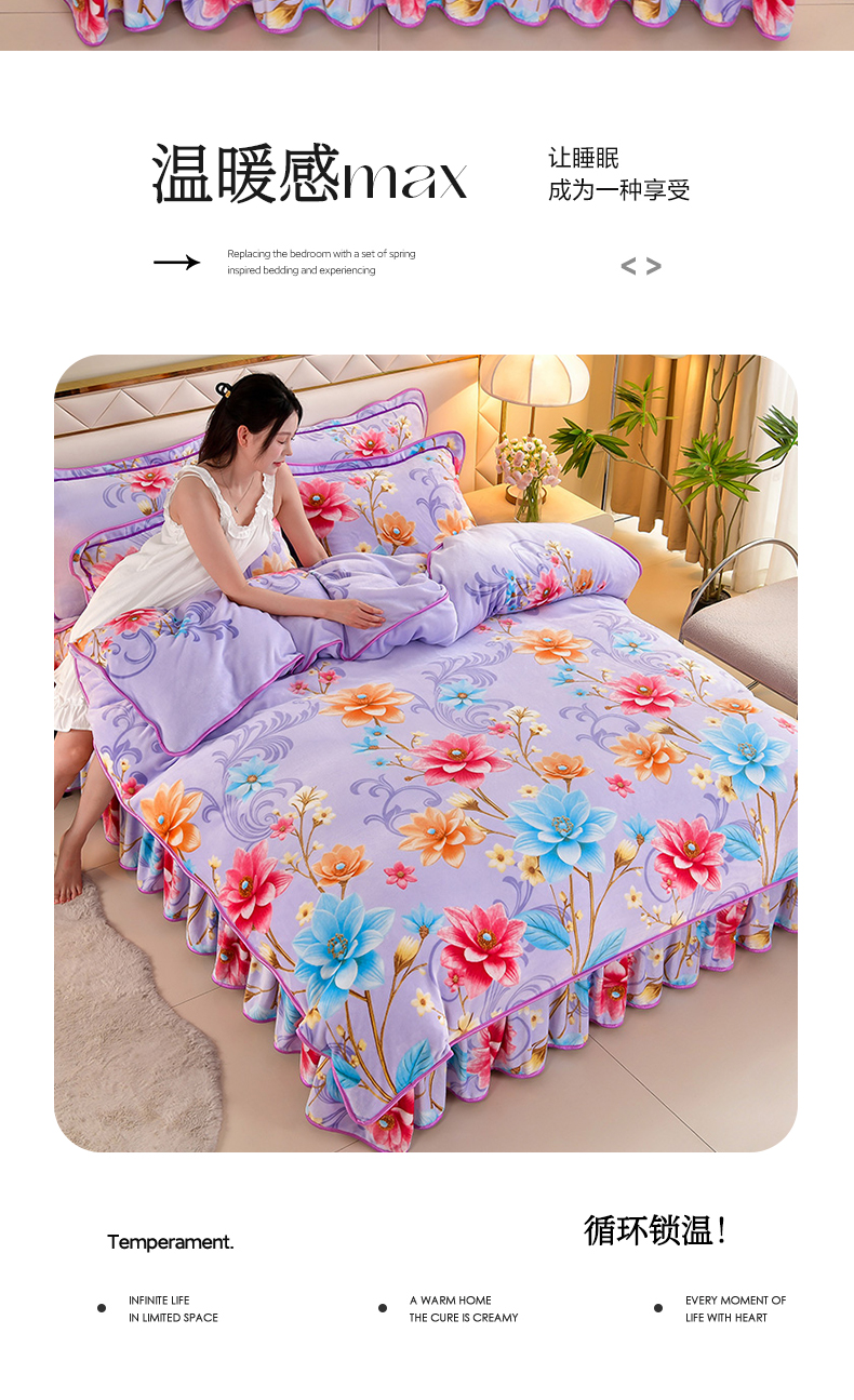 馨梦缘 2025直播爆款8.5斤牛奶绒四件套加厚保暖床裙金貂绒 陌上花开