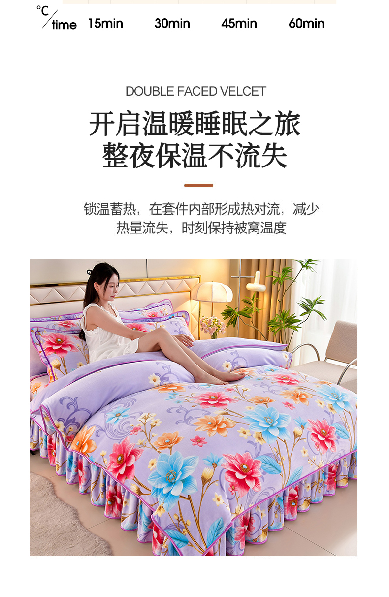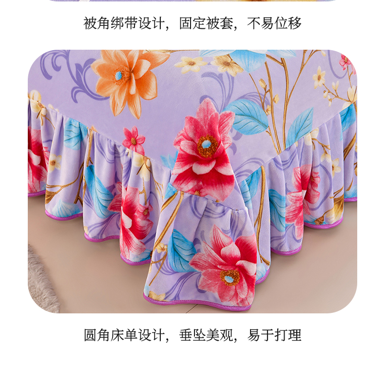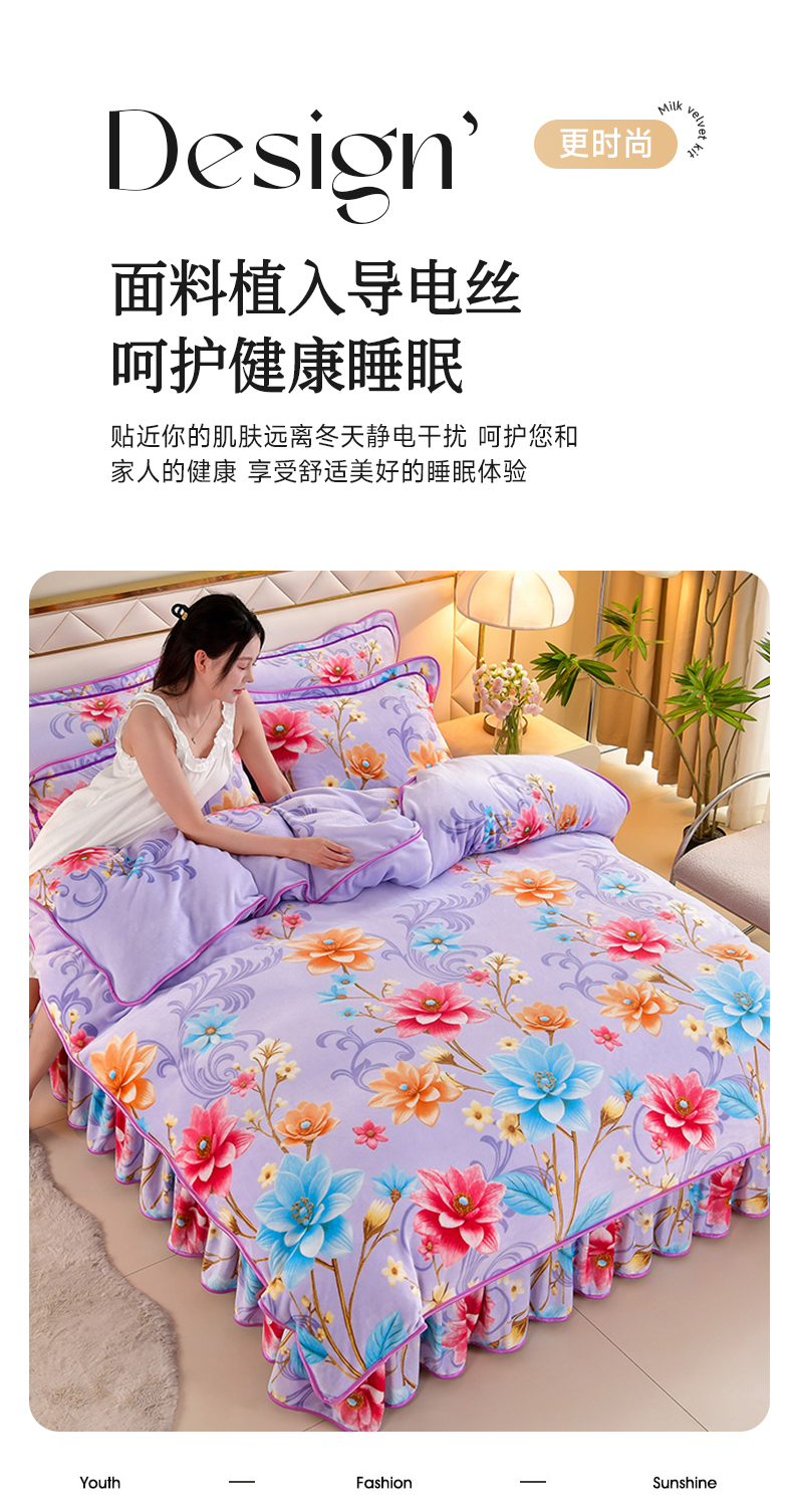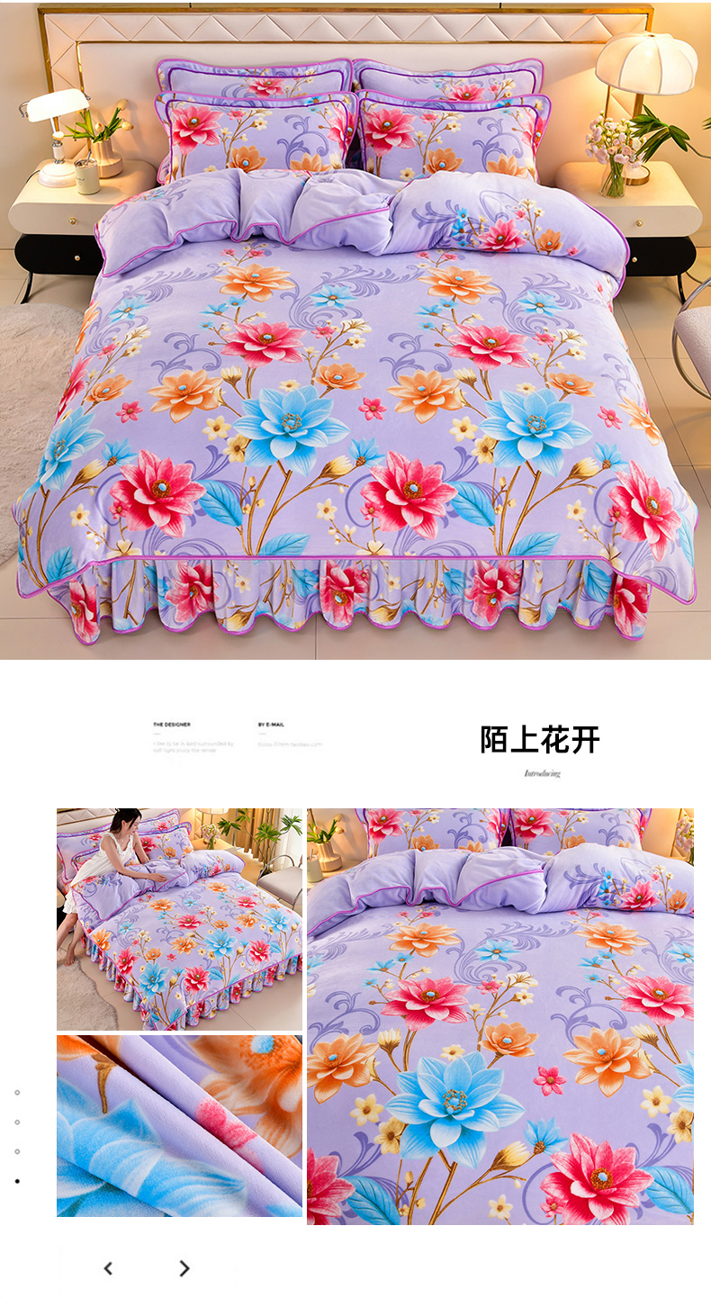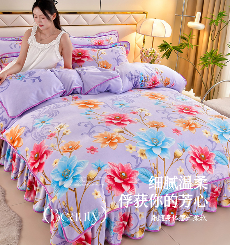 商品名称: 馨梦缘 2025直播爆款8.5斤牛奶绒四件套加厚保暖床裙金貂绒 陌上花开