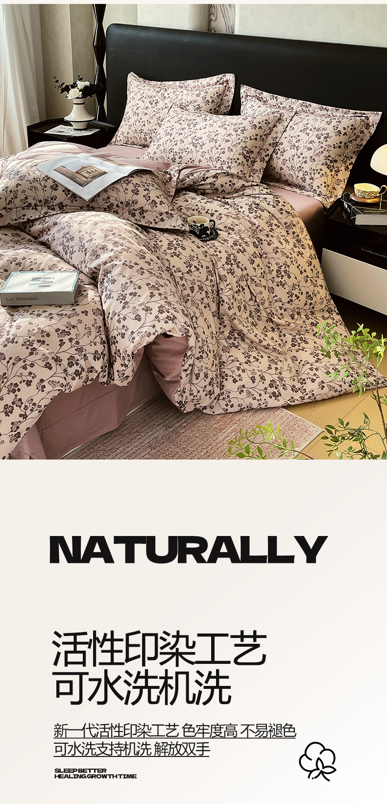 商品名称:宜家坊 2025新款升级疆大白全棉加厚生态磨毛四件套 南枝-咖