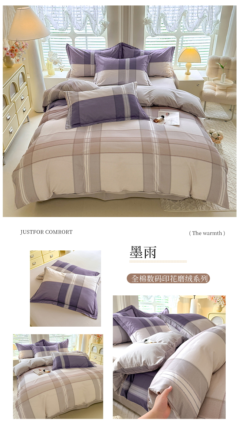 当前位置: 91家纺网 > 商品网购 > 床品套件 > 四件套 > 全棉普通四件套 > 巧玲珑 2025新款100%数码印花生态AB版四件套 墨雨