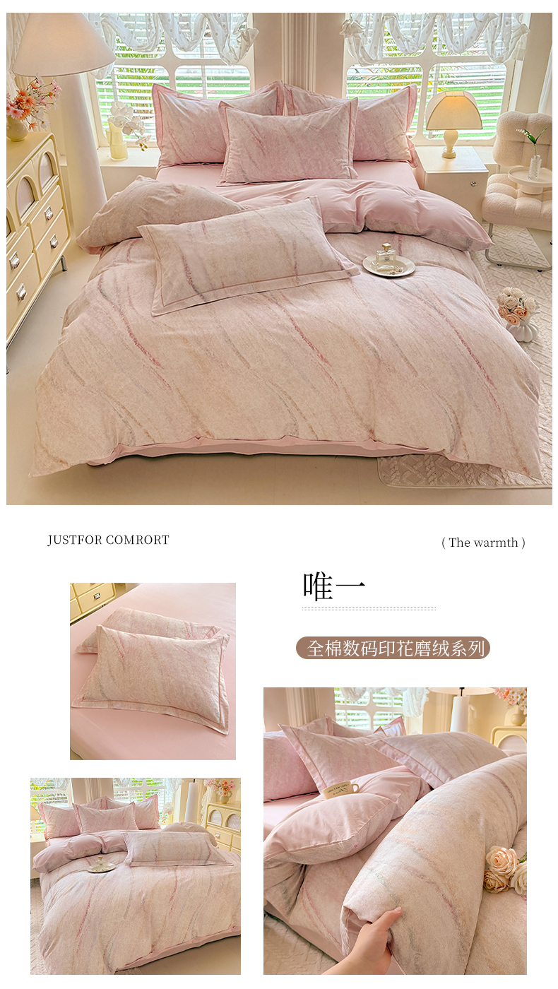 当前位置: 91家纺网 > 商品网购 > 床品套件 > 四件套 > 全棉普通四件套 > 巧玲珑 2025新款100%数码印花生态AB版四件套 唯一