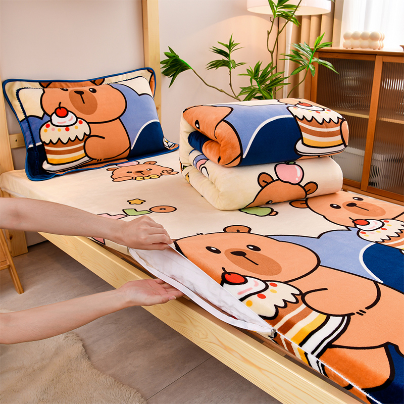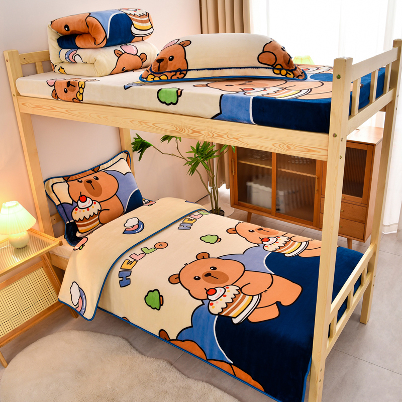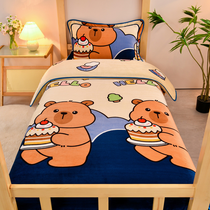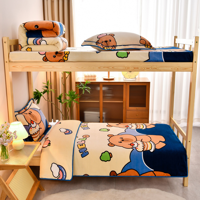 当前位置: 91家纺网 > 商品网购 > 床品套件 > 三件套 > 居尚2025直播爆款高克重印花牛奶绒法莱绒学生三件套 嘟嘟熊