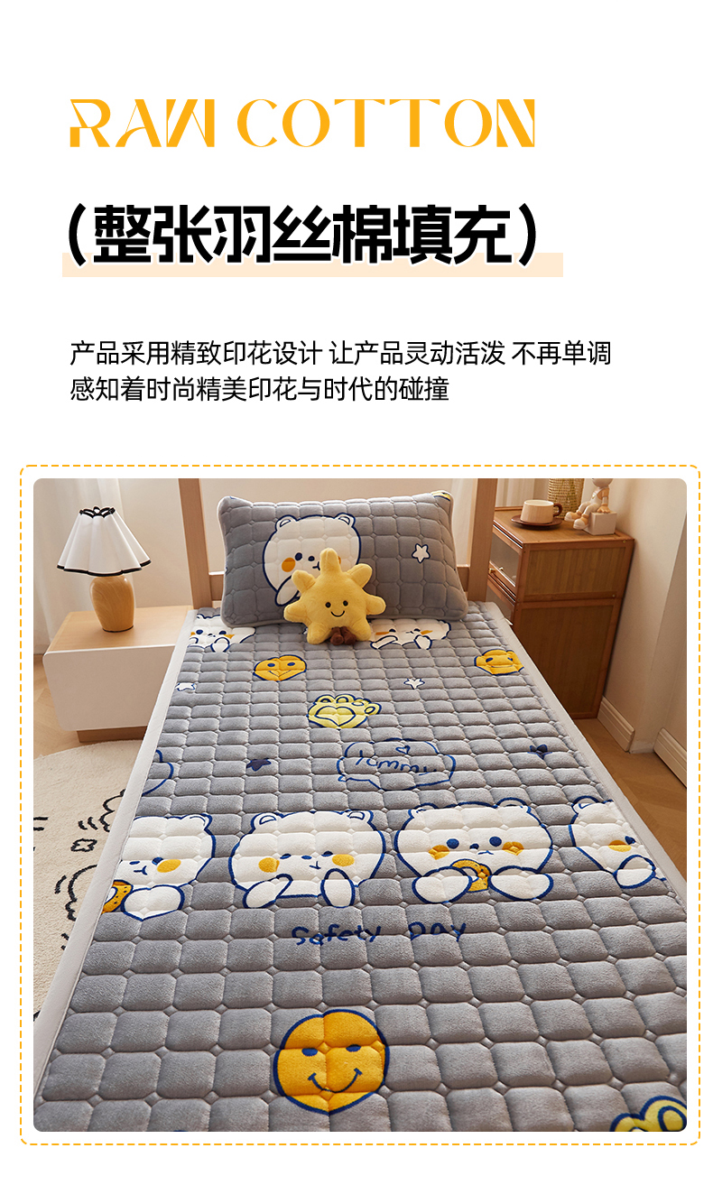 奇丝雅 2025新款A类牛奶绒床褥床垫家用学生宿舍上下铺寝室软垫床护垫夹棉褥子-学生床套件 欢乐熊