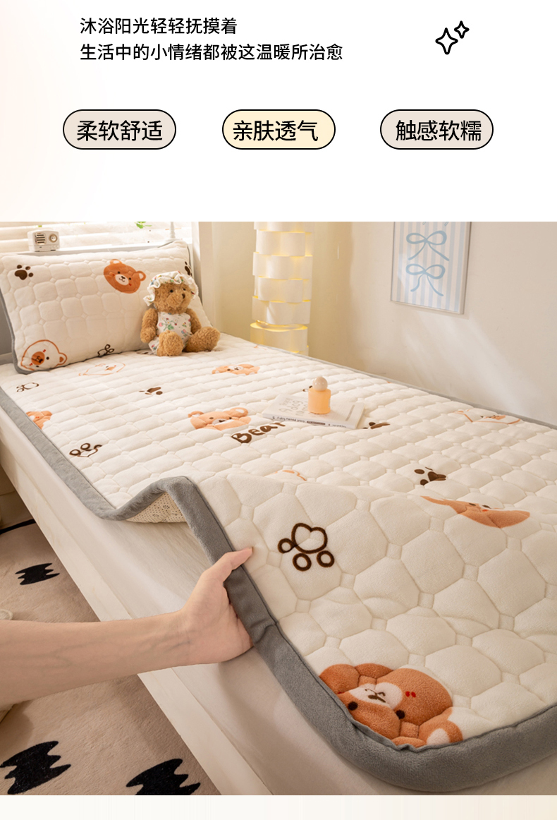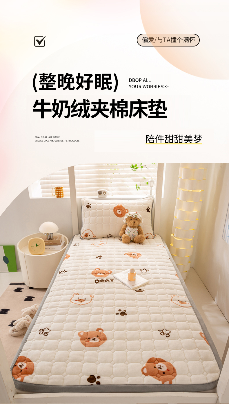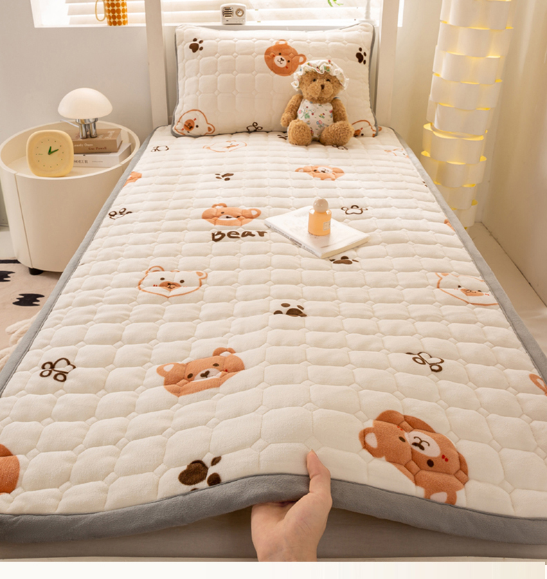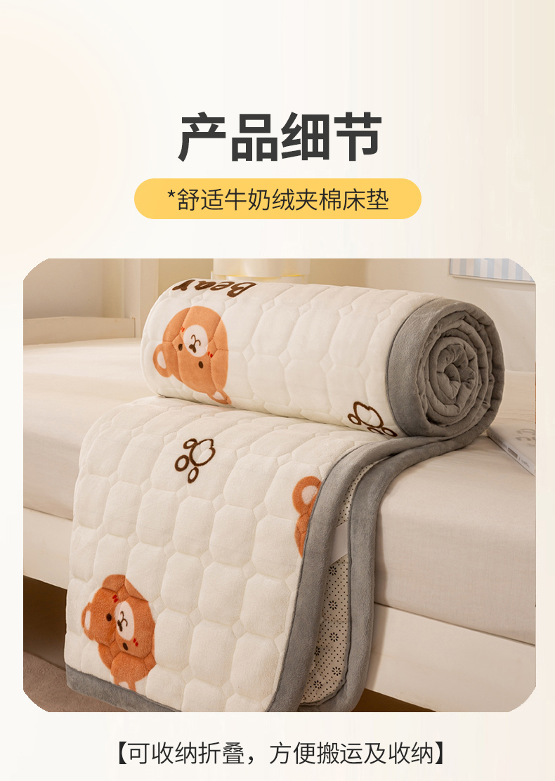 • 91家纺网 家纺一手货源 找家纺 宅部落 2025新款学生宿舍牛奶绒床垫保暖床褥子夹棉加厚印花床护垫 熊的脚印