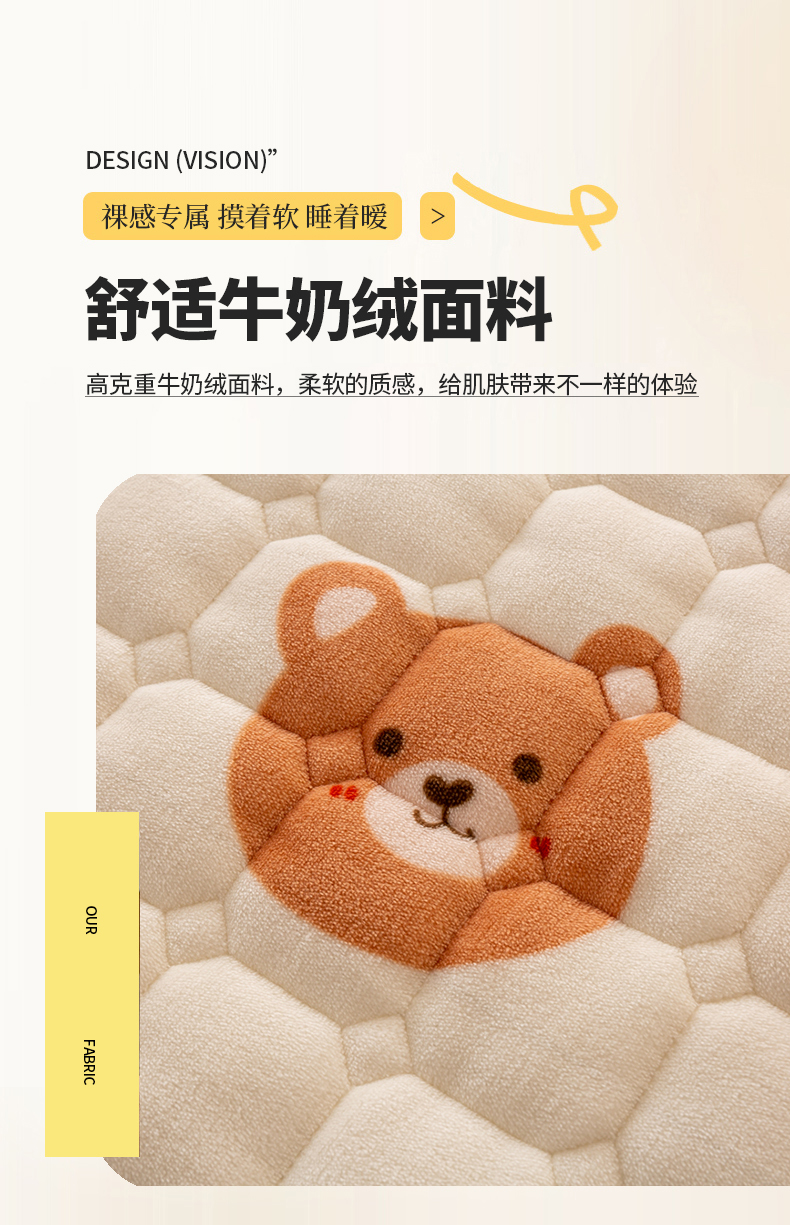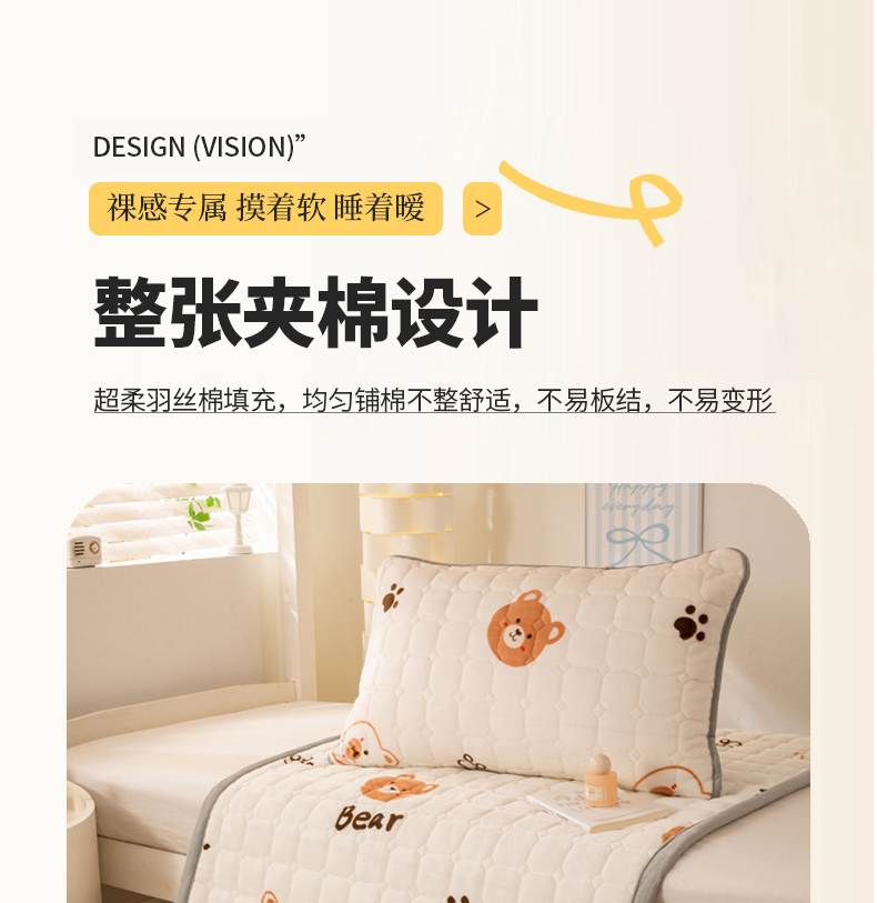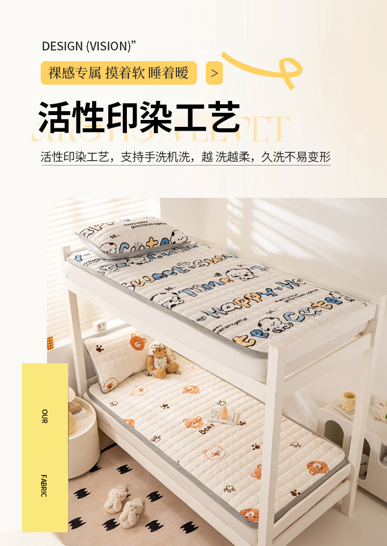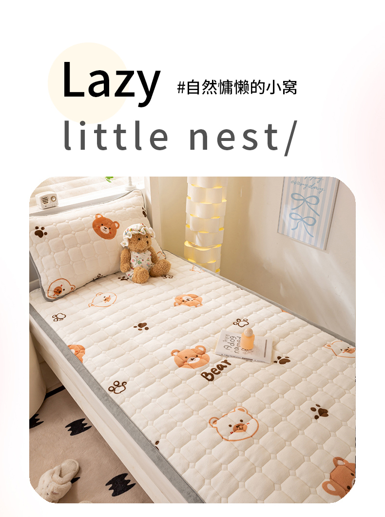 • 91家纺网 家纺一手货源 找家纺 宅部落 2025新款学生宿舍牛奶绒床垫保暖床褥子夹棉加厚印花床护垫 熊的脚印