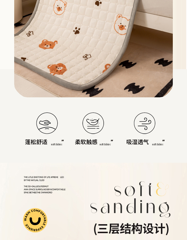 当前位置: 91家纺网 > 商品网购 > 床垫/床褥 > 宅部落 2025新款学生宿舍牛奶绒床垫保暖床褥子夹棉加厚印花床护垫 熊的脚印