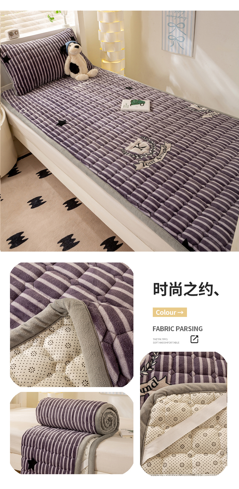 • 91家纺网 家纺一手货源 找家纺 (总)宅部落 2026新款全棉学生宿舍褥子套纯棉床垫套,梦巴黎,童年印记,蝶语-绿,腊肠狗,熊猫派对,卡宾熊,幸运七彩,奈斯草莓,文艺风范,温情北欧,灰细条纹,简居,绅士灰,绅士咖,灰色肌理纹