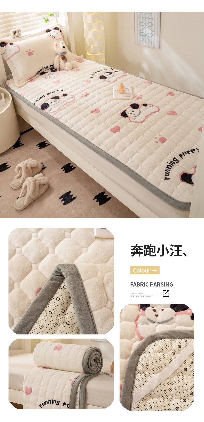 • 91家纺网 家纺一手货源 找家纺 (总)宅部落 2026新款全棉学生宿舍褥子套纯棉床垫套,梦巴黎,童年印记,蝶语-绿,腊肠狗,熊猫派对,卡宾熊,幸运七彩,奈斯草莓,文艺风范,温情北欧,灰细条纹,简居,绅士灰,绅士咖,灰色肌理纹