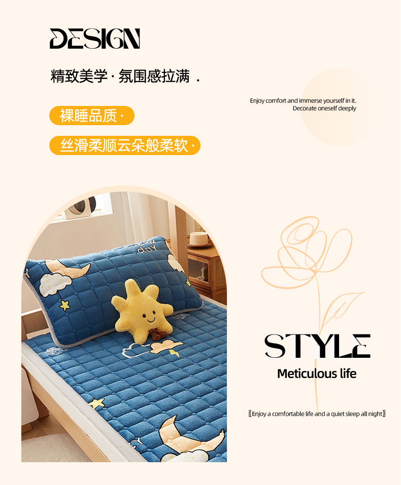 (总)奇丝雅 2025新款A类牛奶绒泡泡绒床褥床垫床盖兔毛绒家用学生宿舍上下铺寝室褥子软垫床护垫夹棉(大床)场景二,星星猫咪,月亮湾,趴趴狗,繁星,爱心咖,樱桃猫咪,幻影灰,暖绒蓝,清新绿,柔和蓝