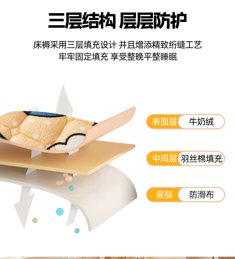 (总)奇丝雅 2025新款A类牛奶绒泡泡绒床褥床垫床盖兔毛绒家用学生宿舍上下铺寝室褥子软垫床护垫夹棉(大床),星星猫咪,爱心咖,繁星,幻影灰,暖绒蓝,趴趴狗,清新绿,柔和蓝,樱桃猫咪,月亮湾