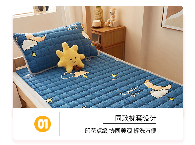 商品名称:奇丝雅 2025新款A类牛奶绒床褥床垫家用学生宿舍上下铺寝室软垫床护垫夹棉褥子-学生床单件 晚安