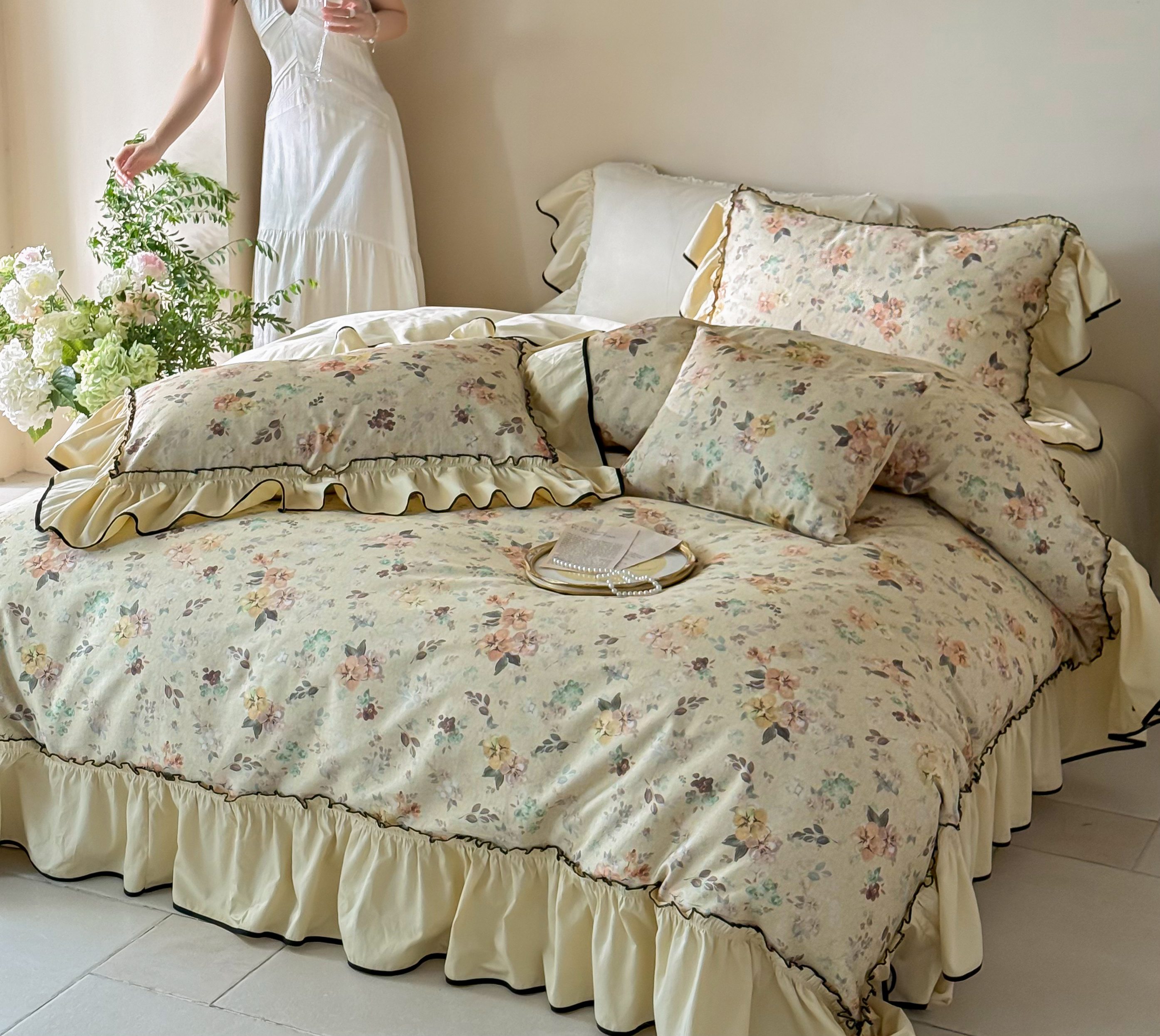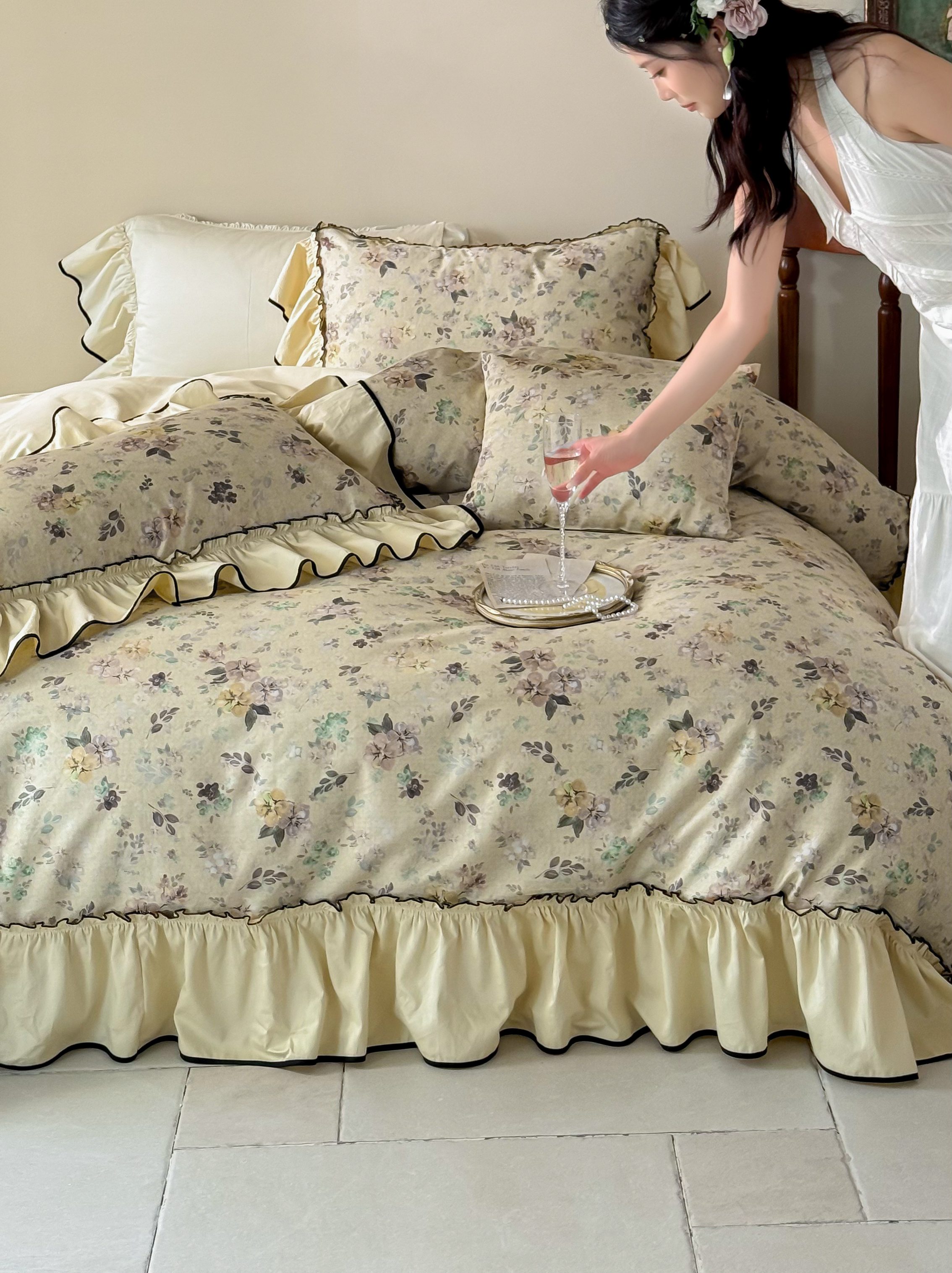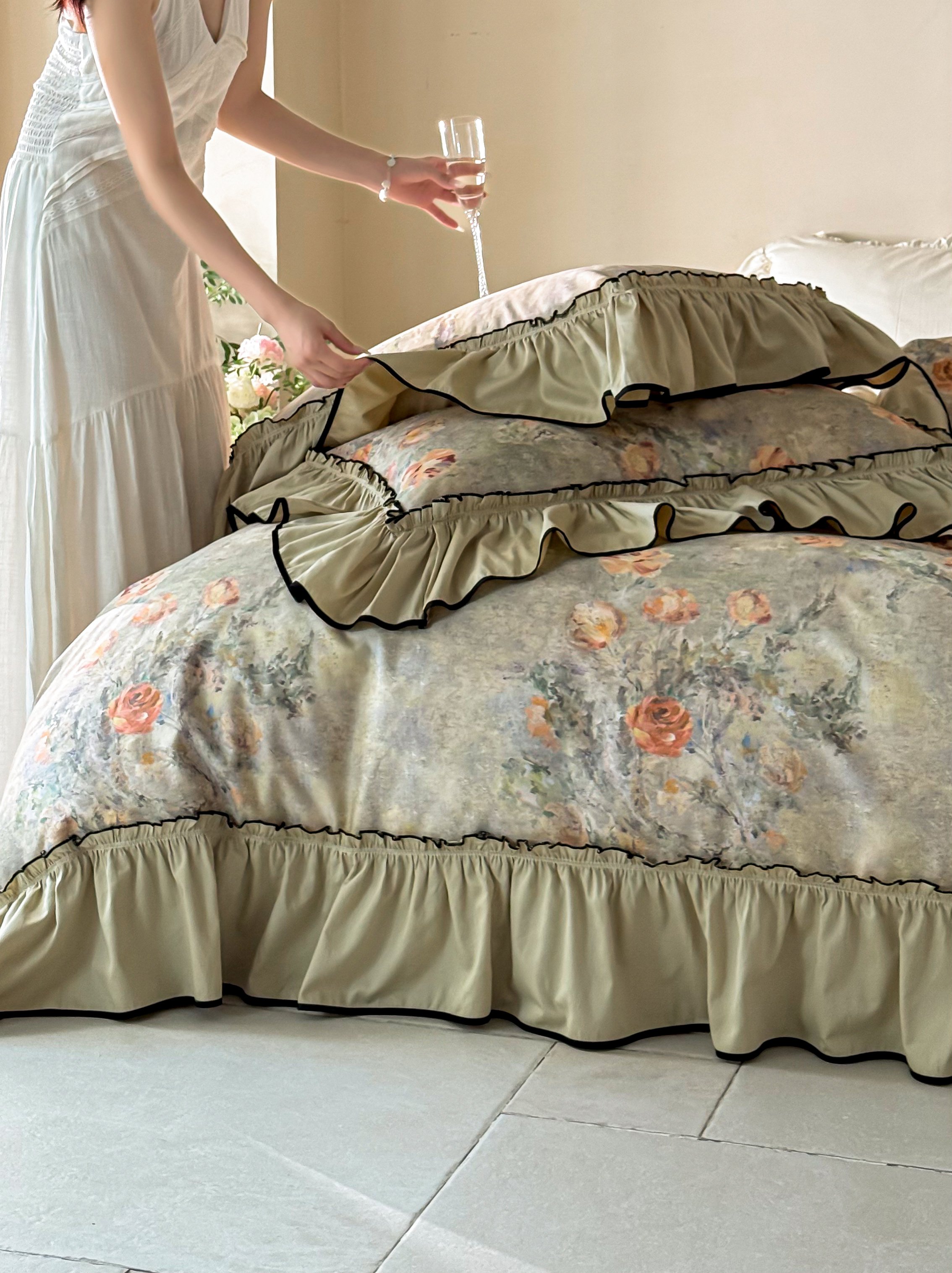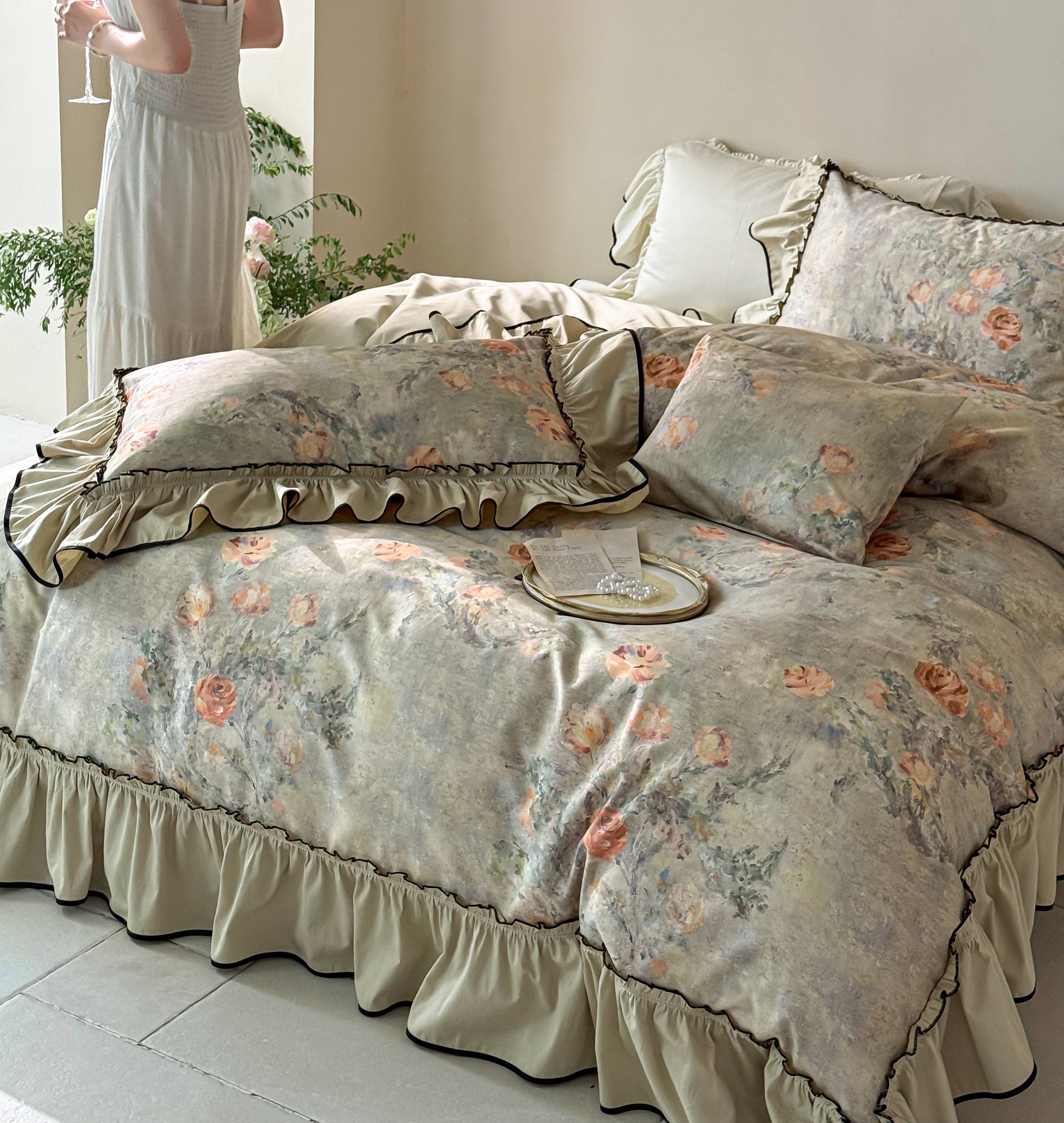 (总)优然居家纺 2025新款50支全棉纯棉印花法式双头木耳边四件套