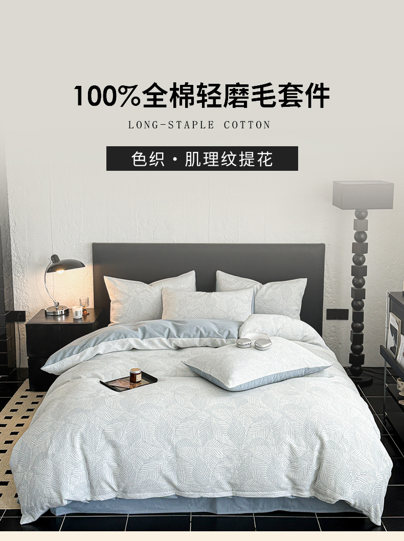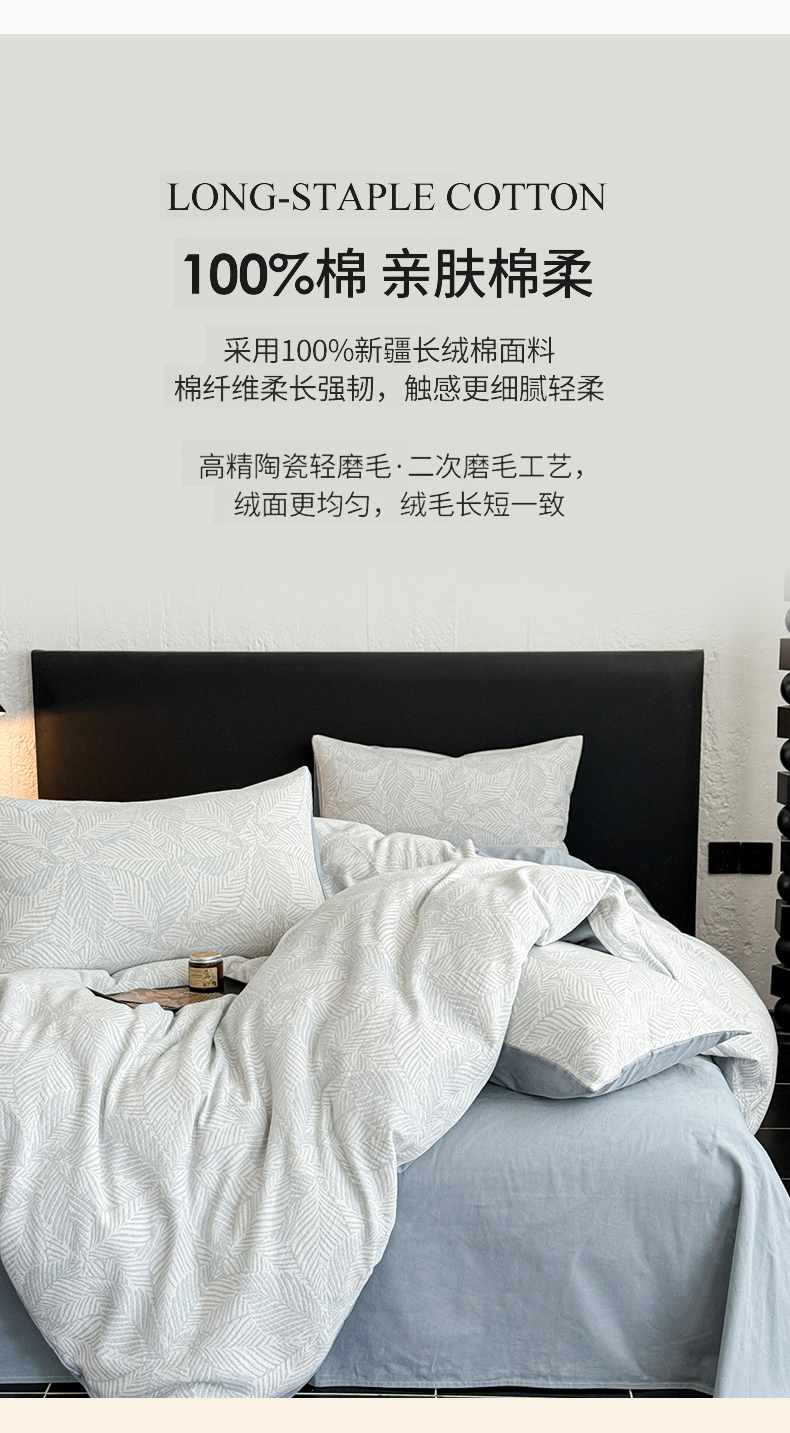 • 91家纺网 家纺一手货源 找家纺 眠博士 2025新款60s长绒棉纯棉提花磨毛被套单被套被套单品 提花磨毛单被-枫叶蓝
