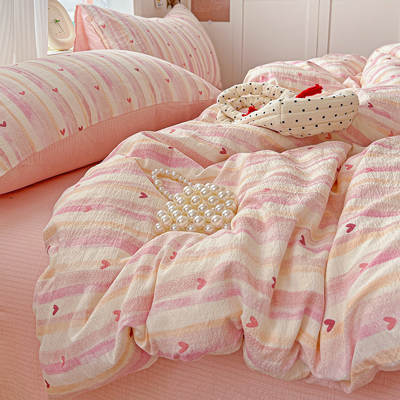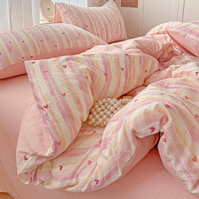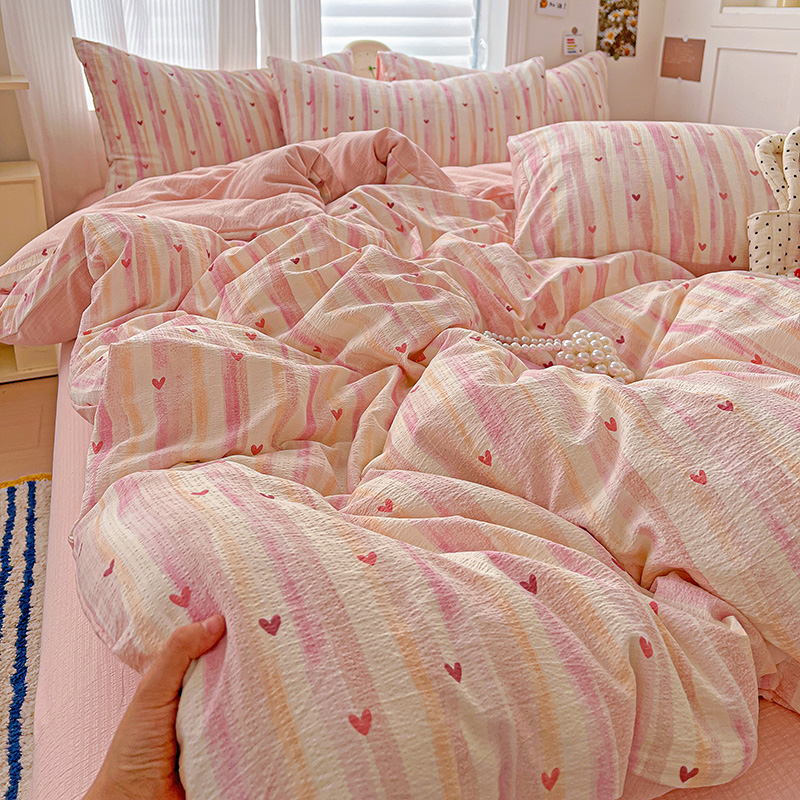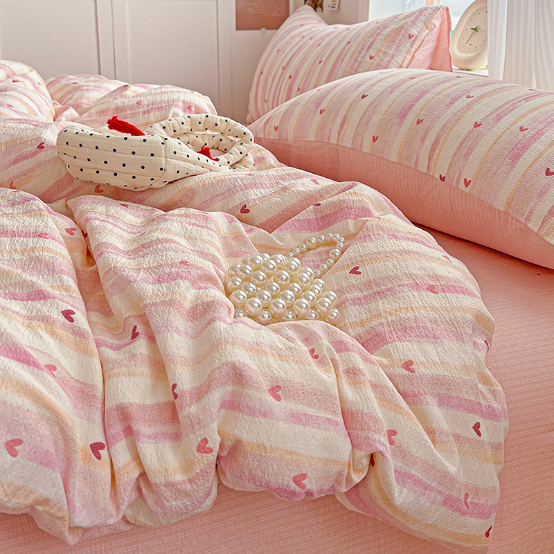 商品名称:一比一 2026新款云感皱皱双层纱四件套-简单款 红爱心