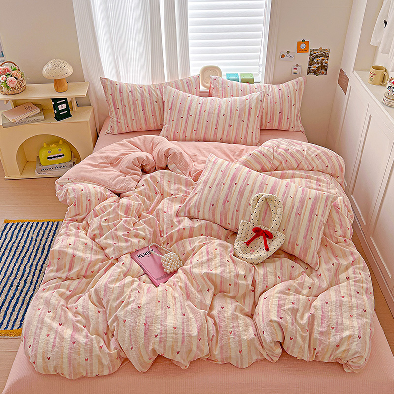 (总)一比一家纺 2026新款古法水洗仿棉云感纱A类四件套,知秋,白兰地,彩波波,草莓点点,格纹狗,嗨皮狗,赫莲娜,花千朵,花絮,酱果,蓝小格,莉莉安,梦幻灰,南瓜果果,葡萄,浅梦,森屿,疏影,甜心草莓,甜心喵,条纹狗,童趣,小黄花,小木马,小时光,小幸运,修修狗,薰衣草,灰樱桃,樱桃熊,鱼多多,组合图仅做展示不可下单