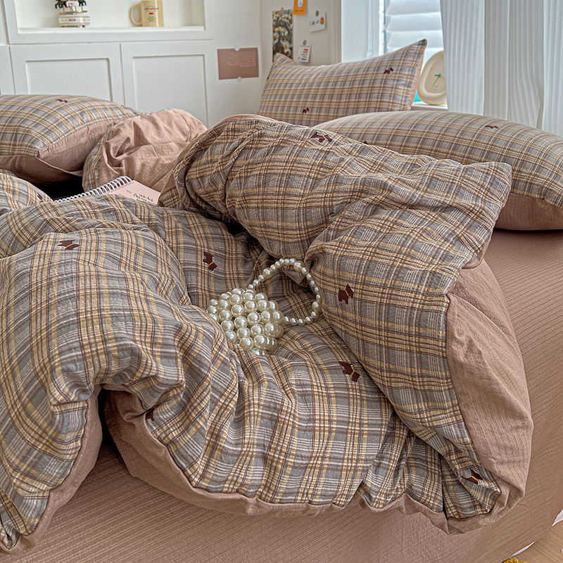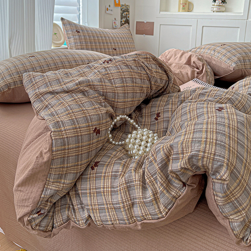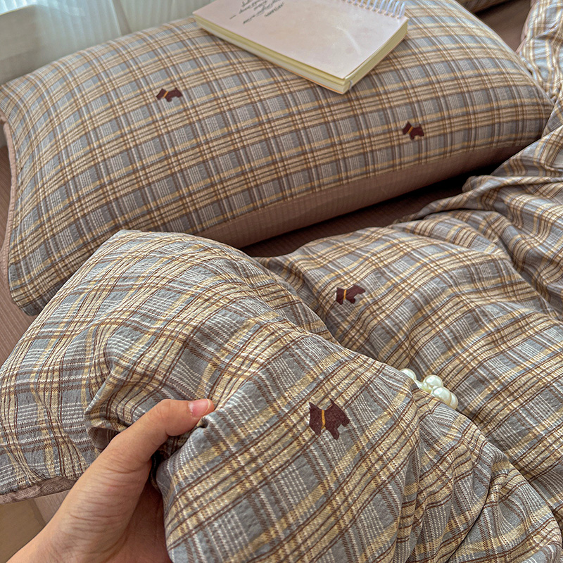 (总)一比一家纺 2026新款古法水洗仿棉云感纱A类四件套,知秋,白兰地,彩波波,草莓点点,格纹狗,嗨皮狗,赫莲娜,花千朵,花絮,酱果,蓝小格,莉莉安,梦幻灰,南瓜果果,葡萄,浅梦,森屿,疏影,甜心草莓,甜心喵,条纹狗,童趣,小黄花,小木马,小时光,小幸运,修修狗,薰衣草,灰樱桃,樱桃熊,鱼多多,组合图仅做展示不可下单