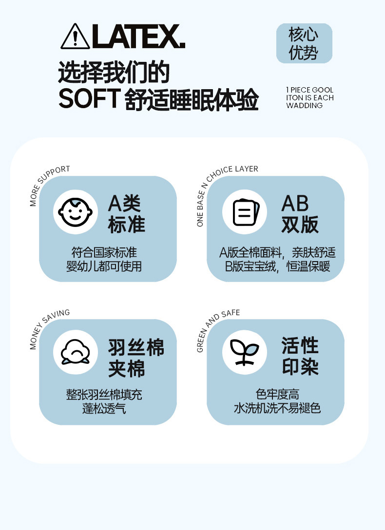 • 91家纺网 家纺一手货源 找家纺 乐野家居 2025新款开学季 A类全棉水洗棉+宝宝绒学生床盖三件套(多功能被套) 左岸蓝