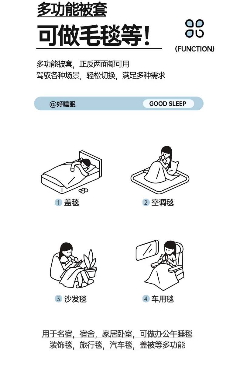 当前位置: 91家纺网 > 商品网购 > 床上用品 > 床盖 > 乐野家居 2025新款开学季 A类全棉水洗棉+宝宝绒学生床盖三件套(多功能被套) 左岸蓝