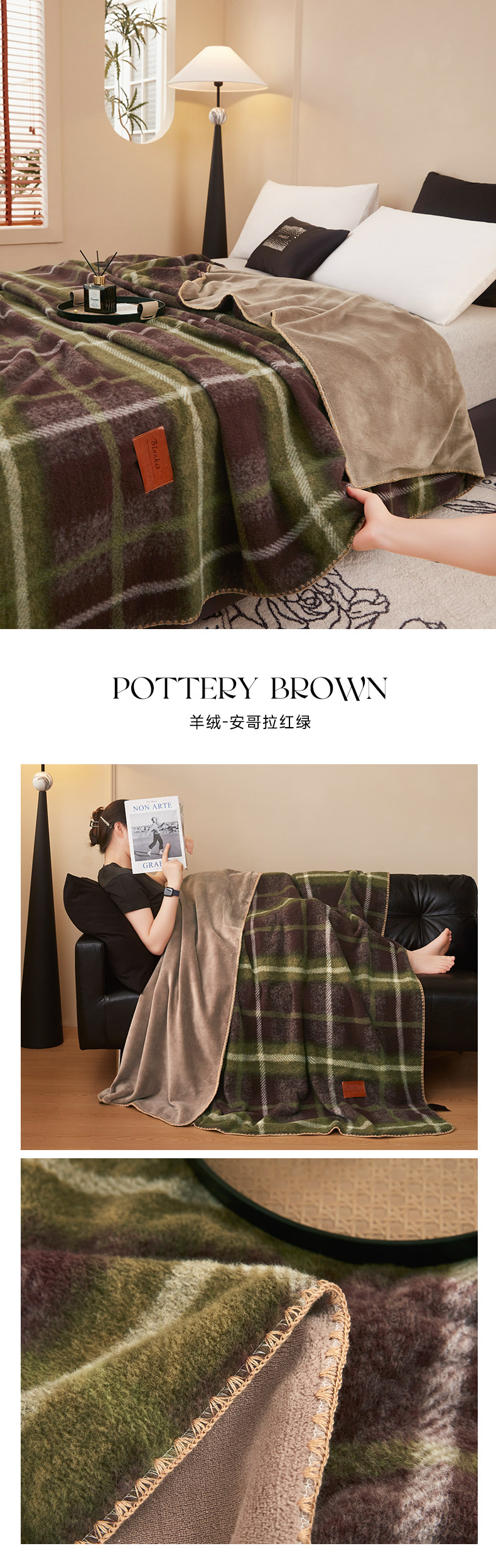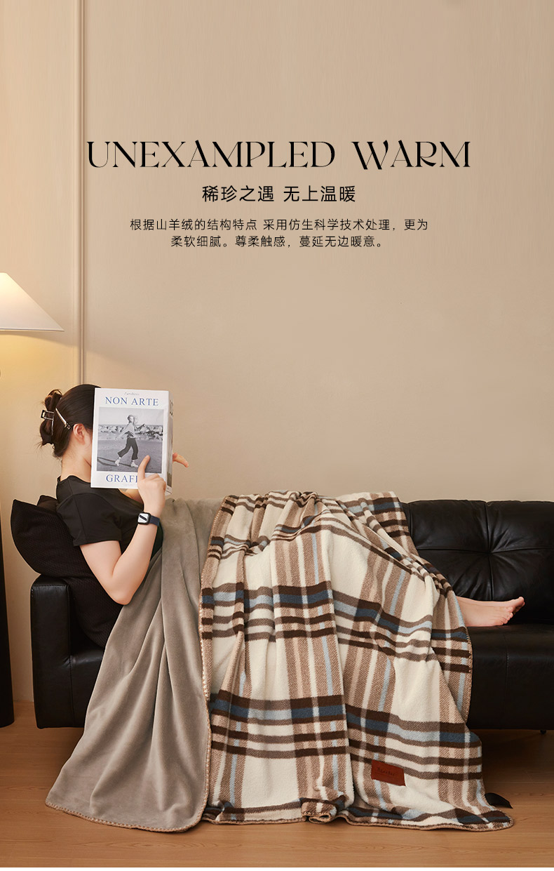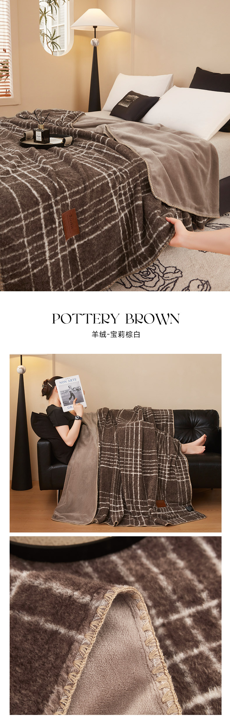 悦织湾家纺 2025新款双层仿羊绒毛毯羊驼绒盖毯绵仿羊绒毯子轻奢印花被子毯子加厚保暖冬季跨境专供 仿羊绒-宝莉黑咖