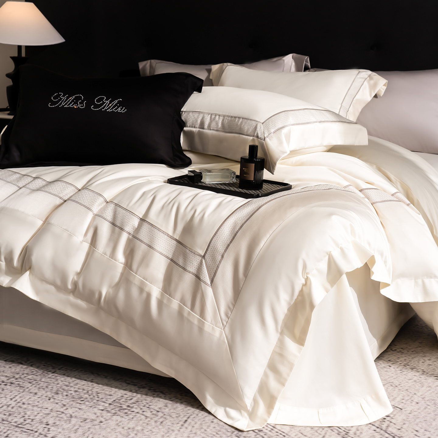 (总)MIU缪家居 2025春夏新款60支兰精天丝四件套-爱莎,爱莎-浅粉,爱莎-乳白