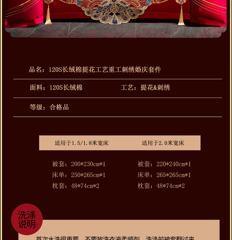 当前位置: 91家纺网 > 商品网购 > 床品套件 > 多件套 > 多件套 > 千禧家纺 2025新款双面长绒棉提花工艺重工刺绣婚庆多件套 龙凤织锦