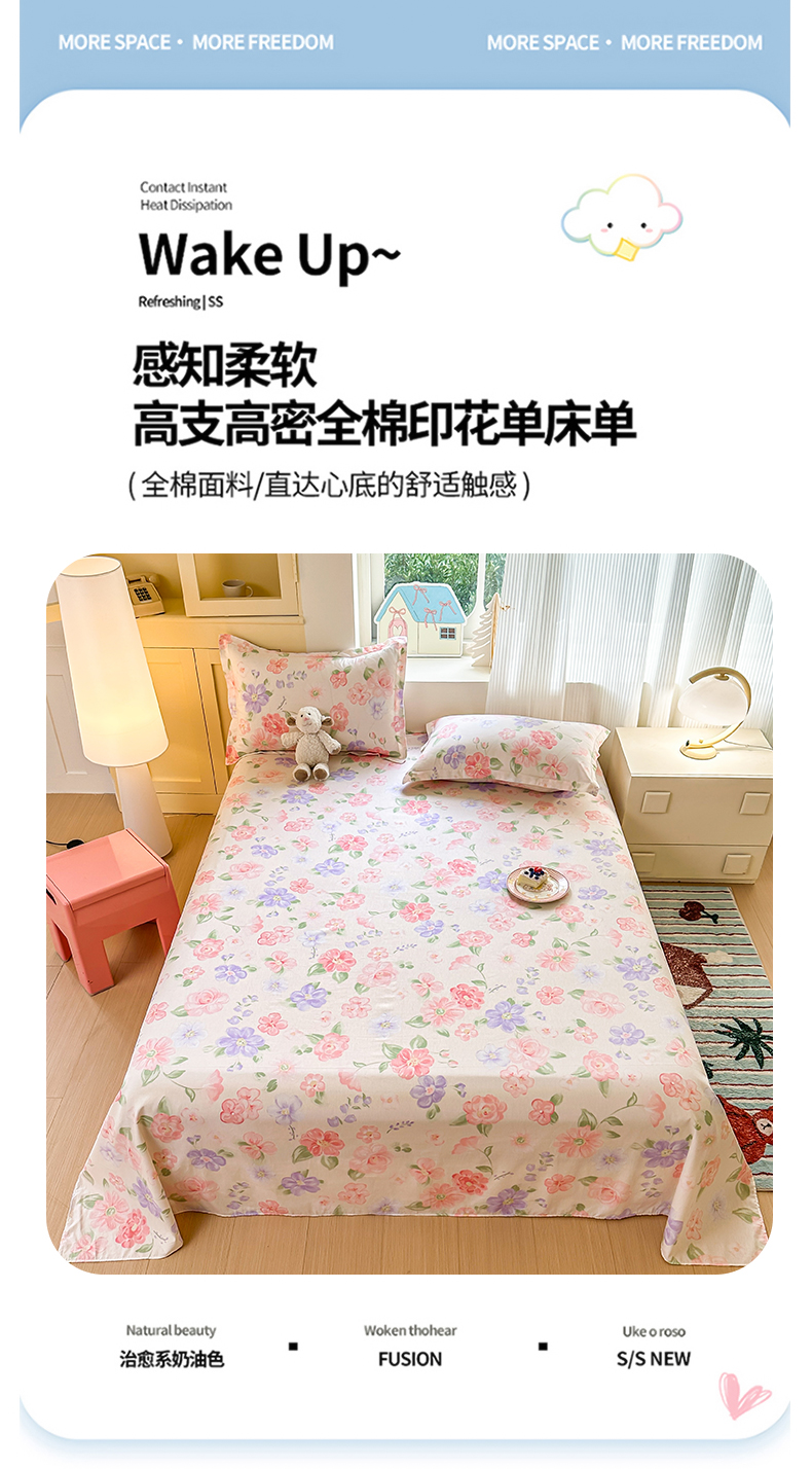 帛织澜家纺 2025新款12868全棉喷气印花床单单件 遇妍-A版