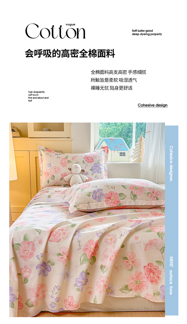 • 91家纺网 家纺一手货源 找家纺 帛织澜家纺 2025新款12868全棉喷气印花床单单件 遇妍-A版