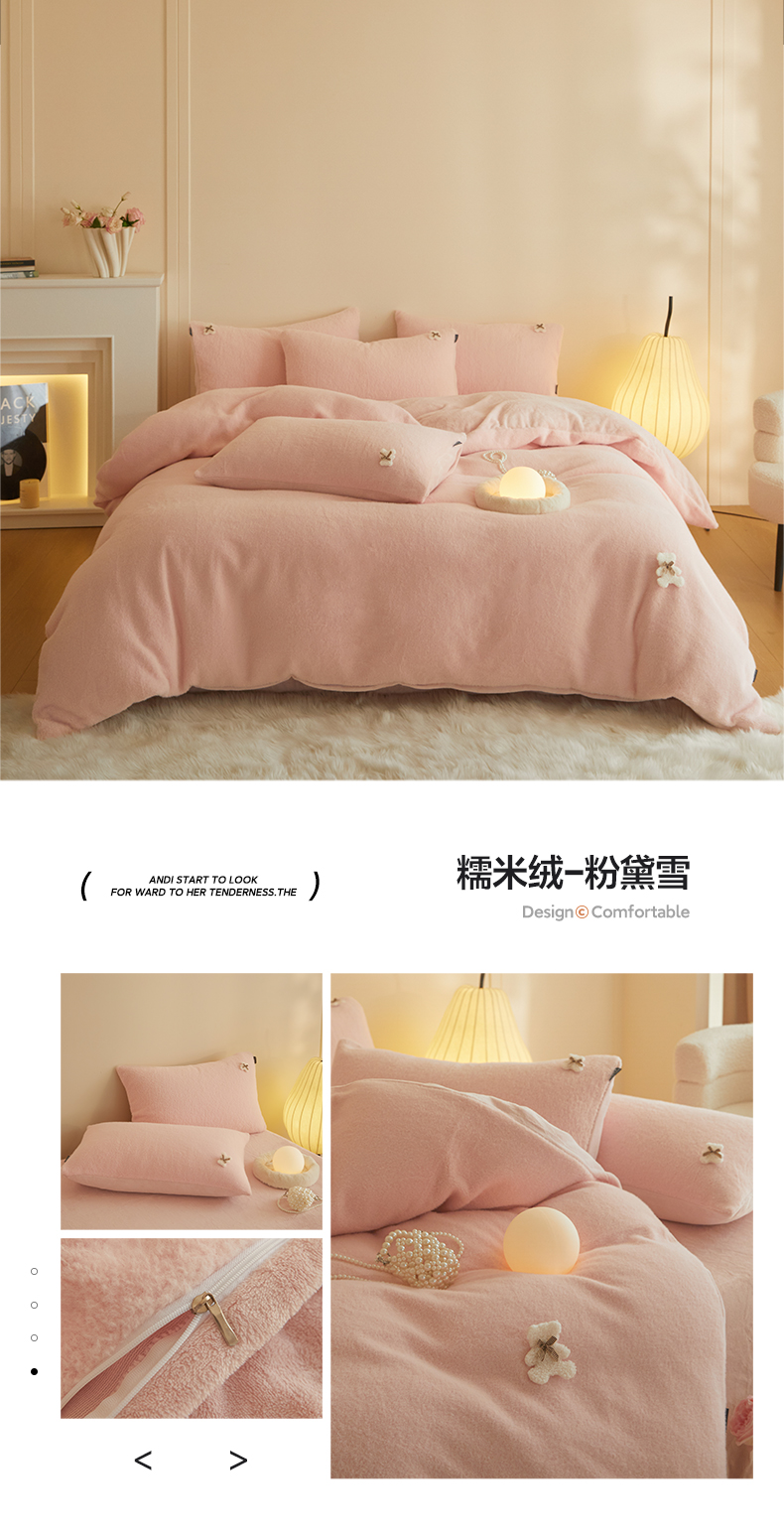 商品名称:羽梦家纺 2025新款260克加厚全消光糯米绒阳光绒加厚保暖四件套 糯米绒-粉黛雪