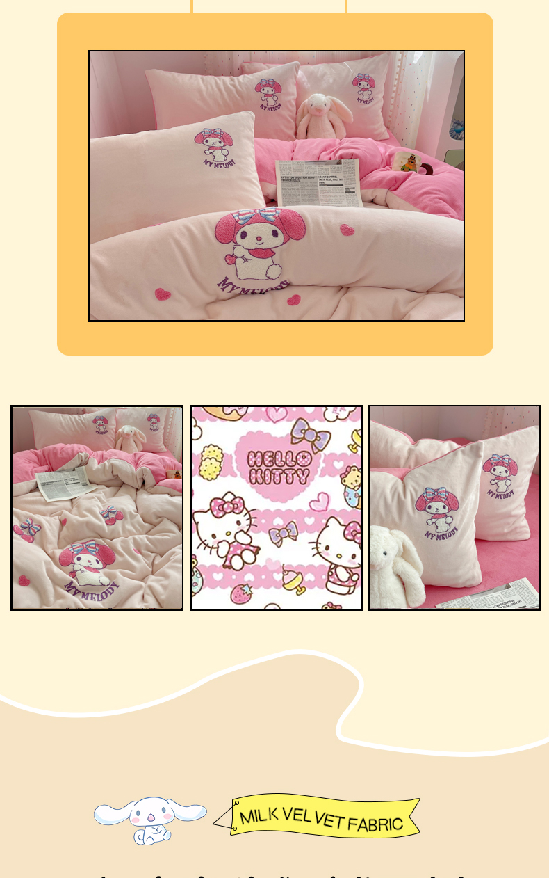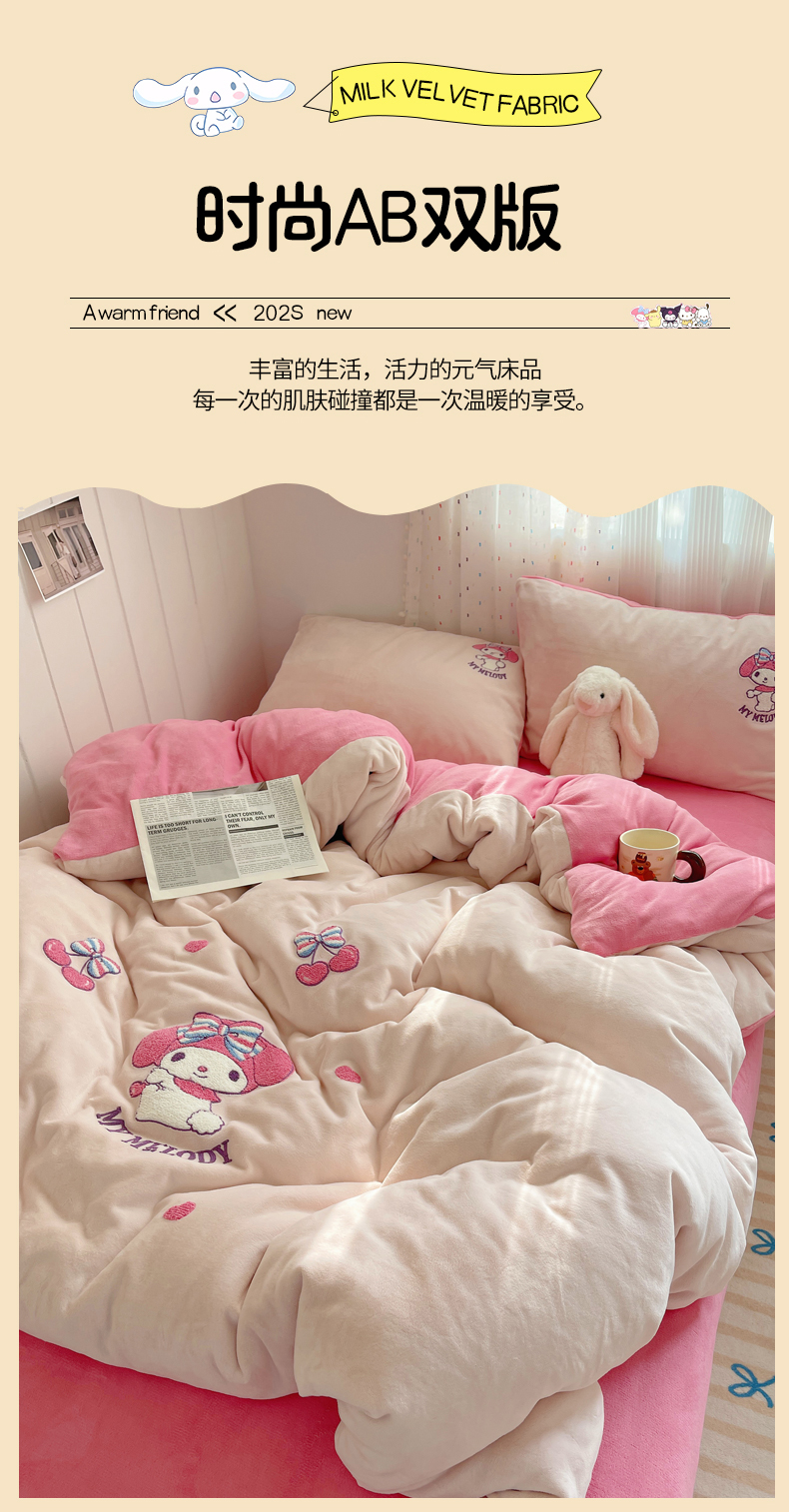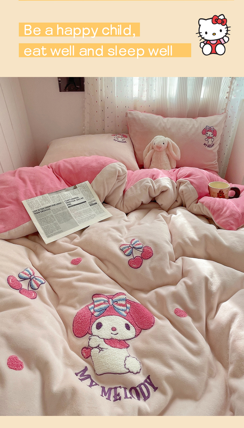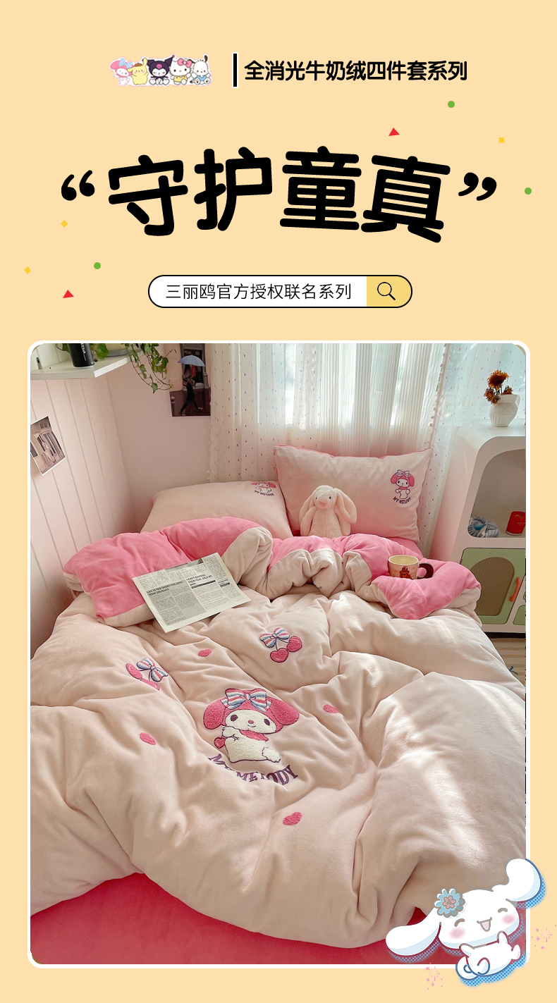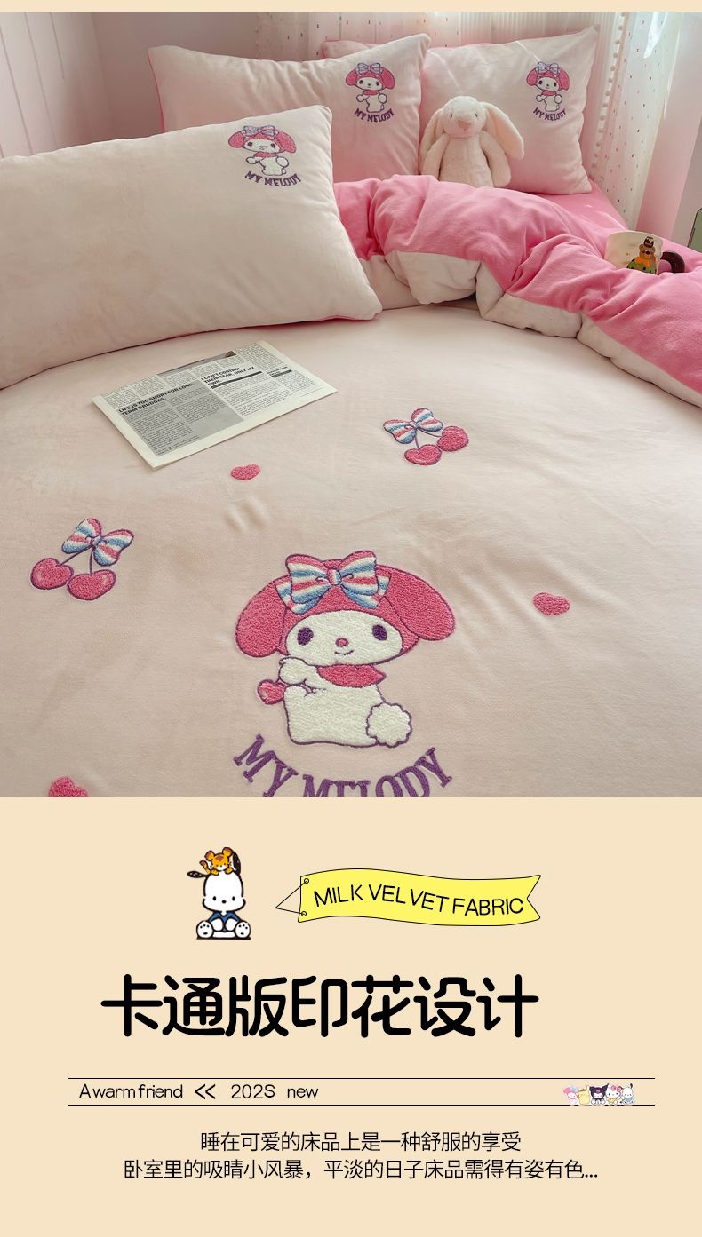 当前位置: 91家纺网 > 商品网购 > 床品套件 > 四件套 > 牛奶绒四件套 > 三朵家纺 2025新款绣花牛奶绒三丽鸥系列四件套 樱桃美乐蒂